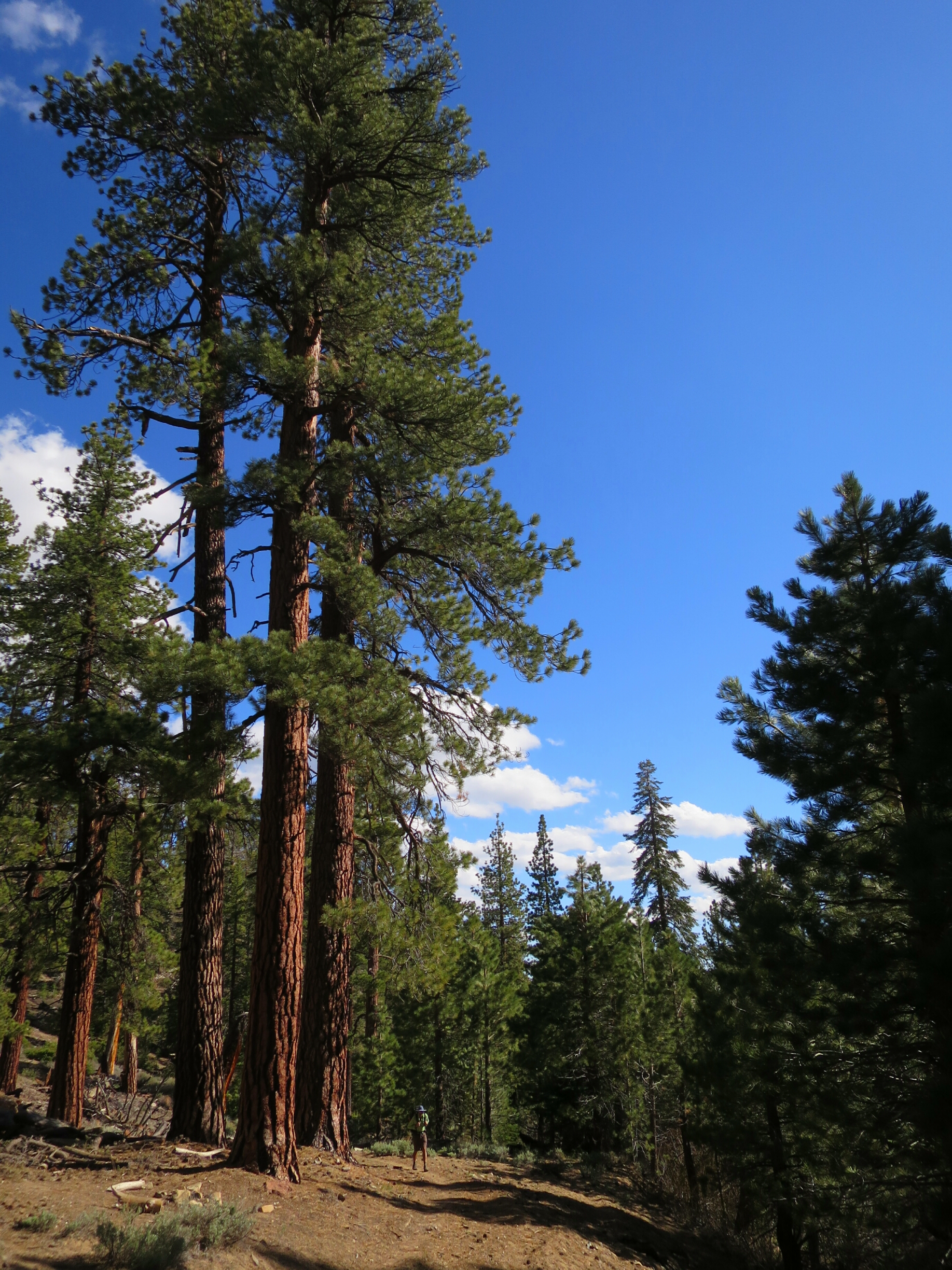 Lots of climbing over fallen enormous trees, which made for slow progress. So sad to see such devastation. The contrast when moving into healthy forest was striking. Even though we were ascending, the grade was mild and we seem to gain elevation fairly quickly. It has been a brilliant start to the Sierra section. The sun was shining and there was hardly any wind which made for a most pleasant day.