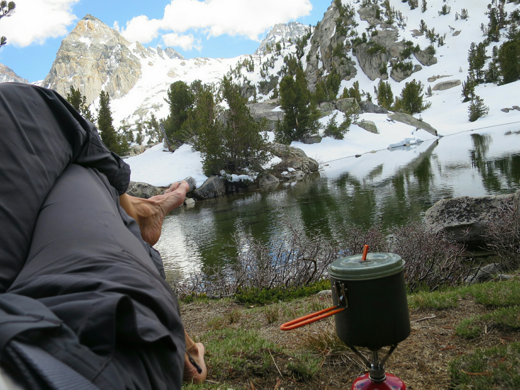 The sound of chirping birds and gushing of snowmelt laden creek were our alarm clocks this morning. Such a change from the frozen silence of the past 2 days. The sky was clear and a beautiful deep blue. I woke up in pain. I felt like my lips have been Botoxed overnight and someone peeled the skin from inside my nose. Duhhhh….just realised that yesterday we forgot to put on sunscreen. It was frozen in the morning and later we were too pumped to get over Forester Pass to remember. Such a silly and very painful mistake.