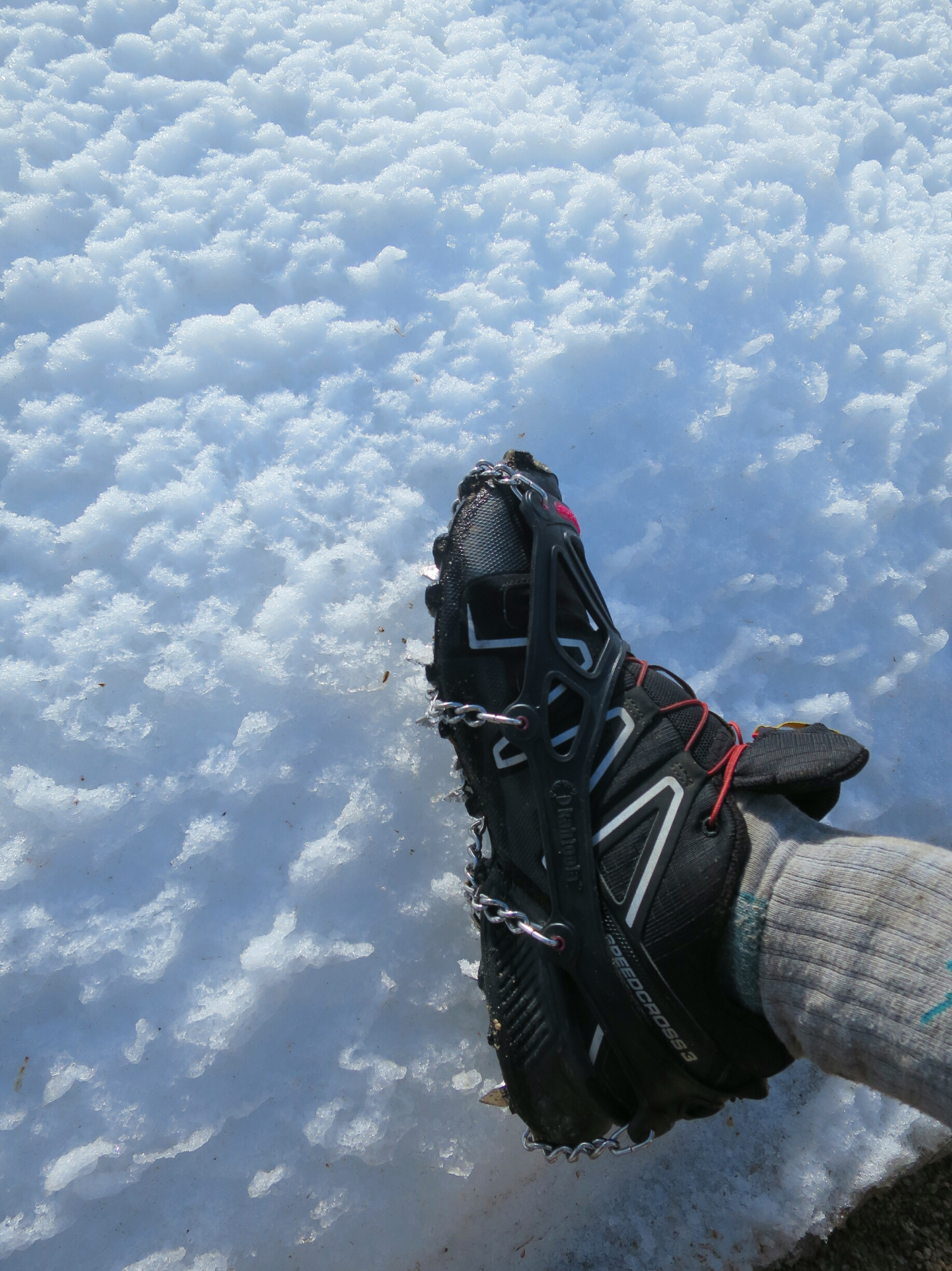The descent was just as difficult as the ascent, lots of snow on a very steep slope with drop offs. It was very slow and painful progress. My quads very burning. Every step had to be firmly anchored before moving for fear of sliding down the slope. Once we cleared the steepest part of the descent we ended up doing 2 glissades down the mountain to get to the valley floor. It was on an icy crust and not so comfortable for glissading.