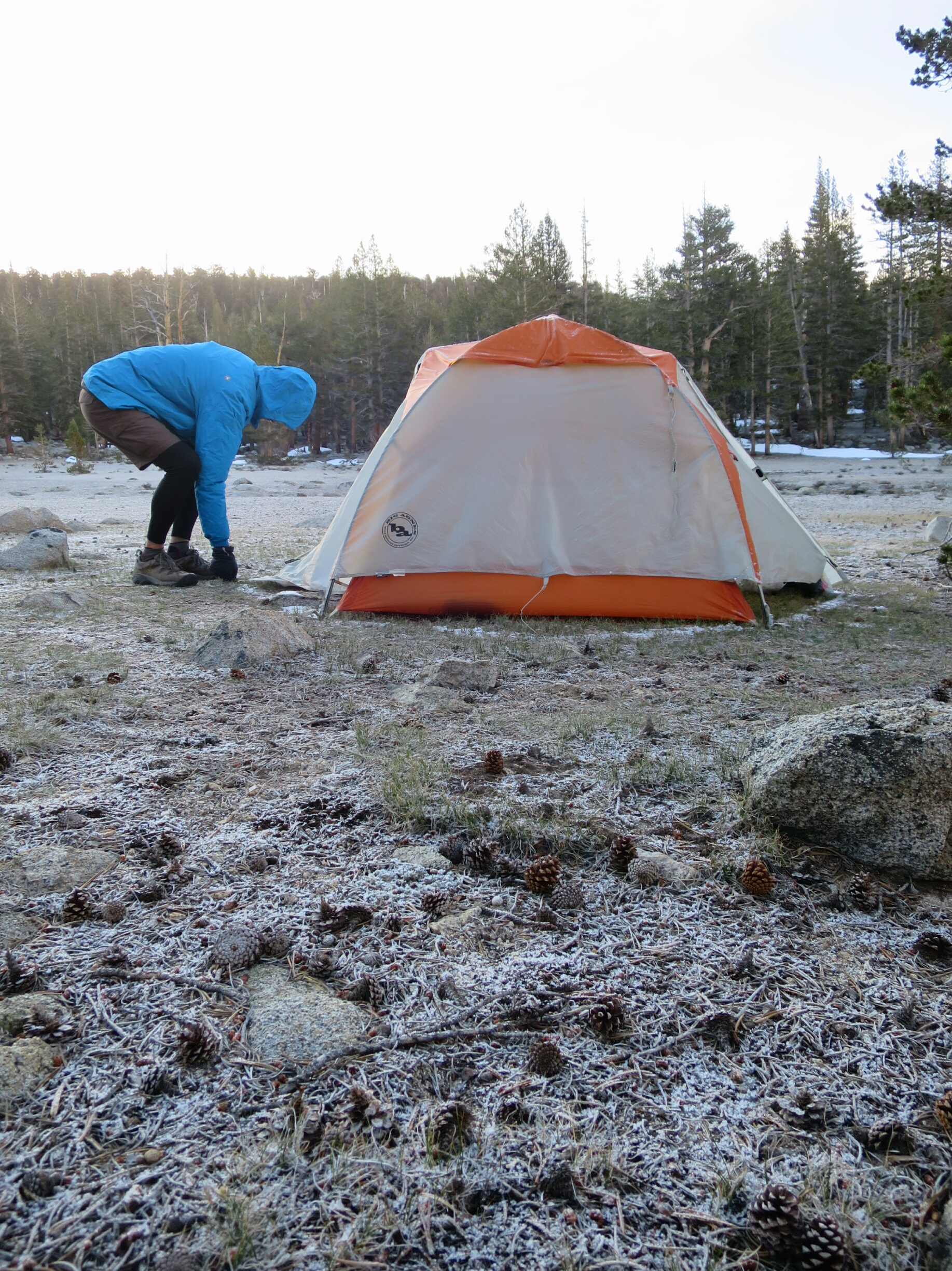 It was an enourmous relief to back on track and descend towards Tyndall Ranger Station where we planned to camp for the night. This is at the base of the ascent of Forester Pass. We rushed to get the tent up before the snow started again. We are camped 5 miles from Forester Pass, praying for sunny skies tomorrow.