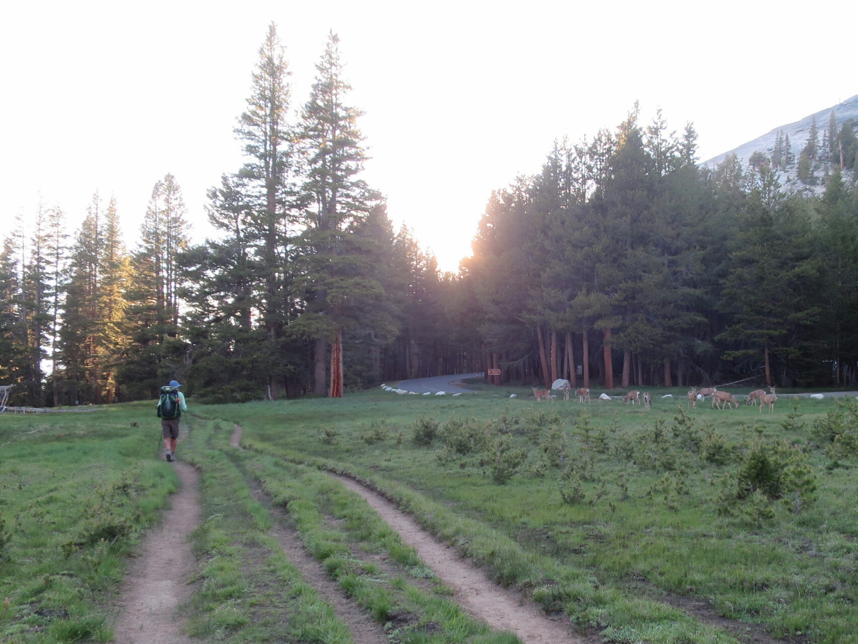 We got to Tuolumne Meadows just before it got dark. The campground is not yet opened. The store and Post Office were closed and there were no people about. So we camped in the campground anyway.