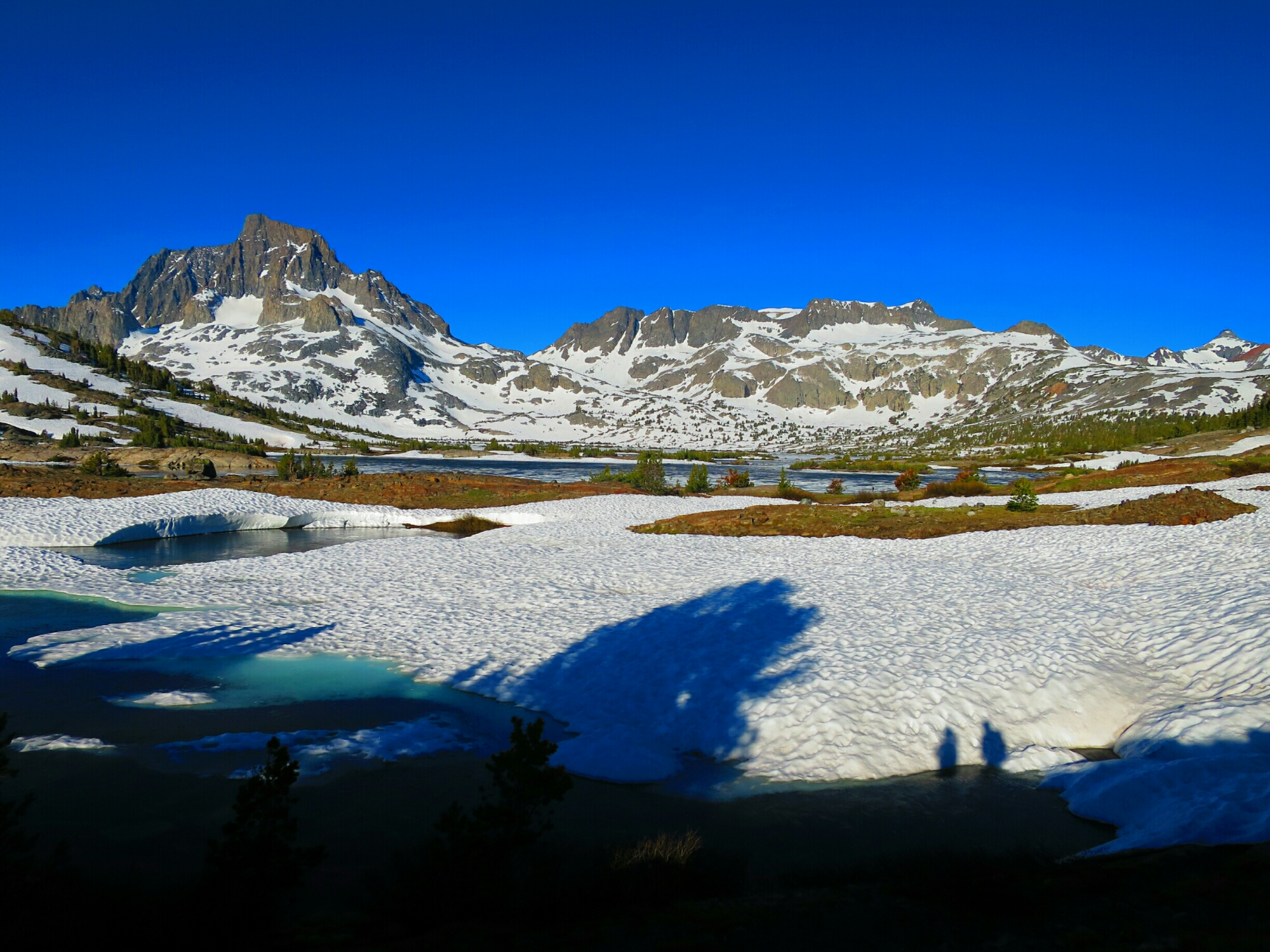 Thousand Island Lake must look so beautiful in summer. It is set in a large open valley and surrounded by tall craggy mountain peaks. This morning the Lake was still frozen so it was difficult to see how it gets its name.