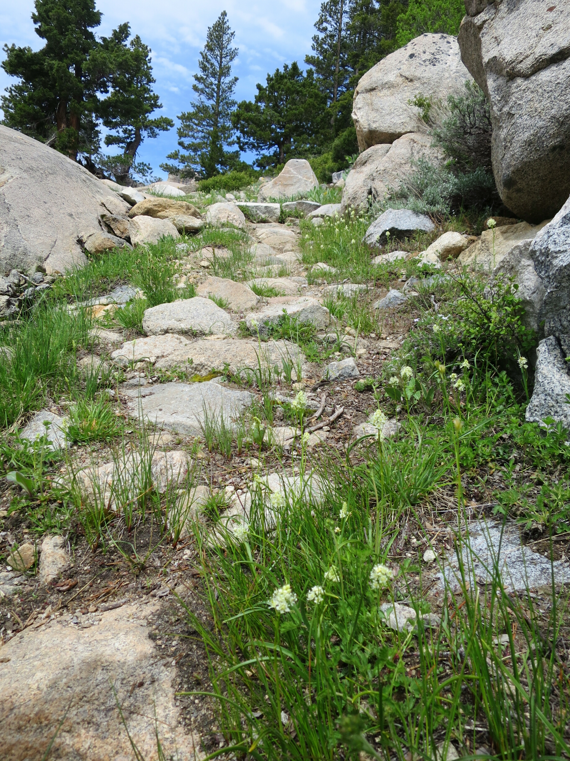 From here we ascended possibly the most beautiful section of trail. It was a brief snapshot of what the Sierra could be like in 5-6 weeks time or when the snow melt is all gone. The trail was dusty and dry any drainage channels have long dried up. It was the first section of trail since we entered the Sierra mountains that had wildflowers in bloom. It was a lovely way to get over the difficulty of the last creek crossing.