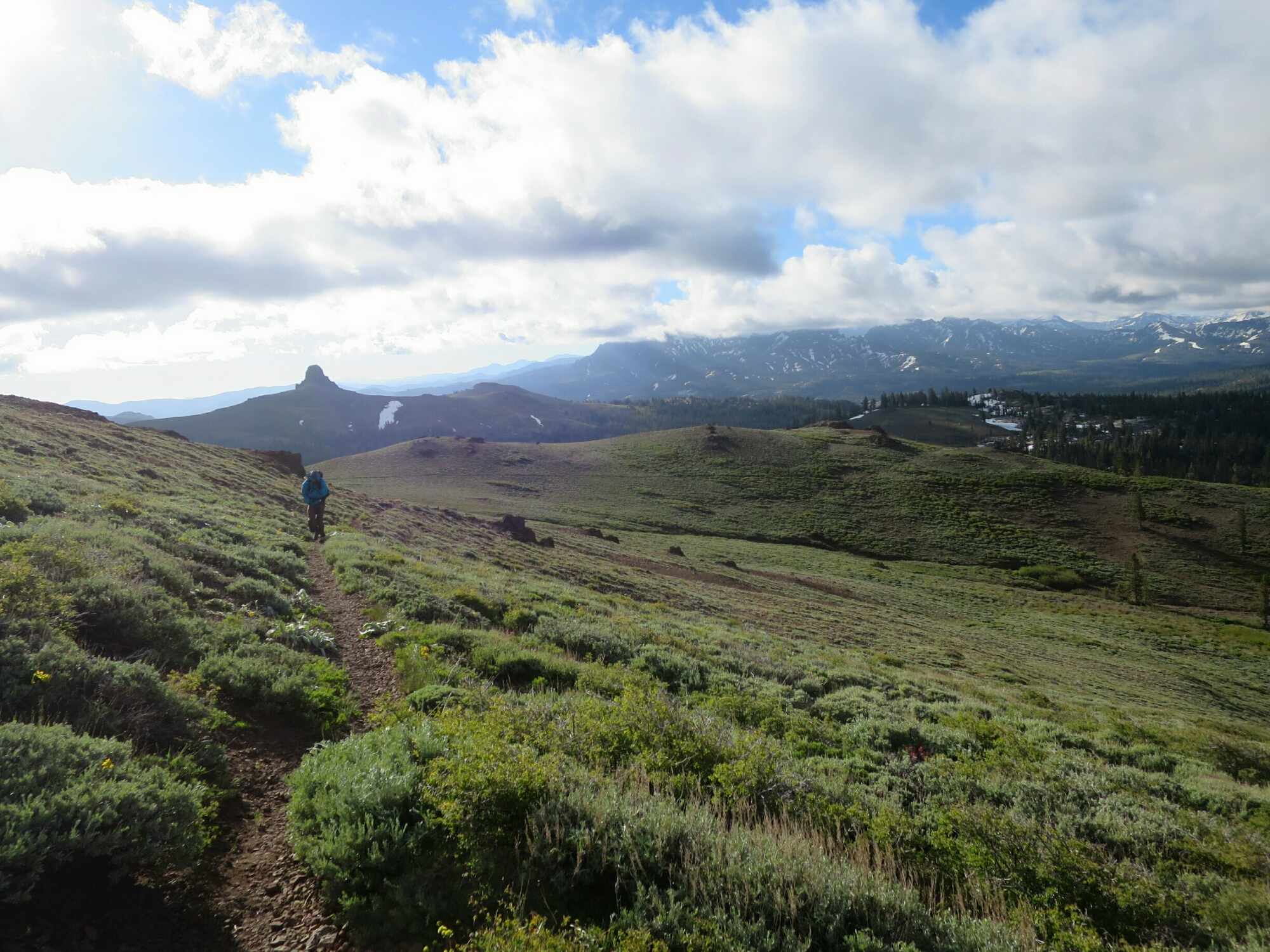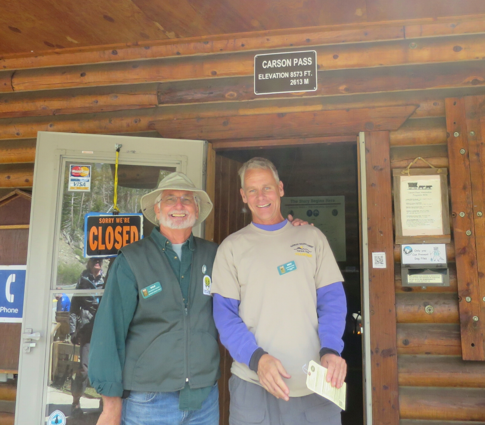 Just over the summit we bumped into a couple out for a day walk. We stopped for a chat, one had hiked a section of the PCT. This encounter was enough to get Hammer out of his slump. The downhill to Carson Pass also helped. We passed quite a few groups of day hikers. It was great to see so many folks out. We felt we had emerged from the wilderness. On the way to Carson Pass we met a volunteer ranger who told us to visit the rangers office and they will give us a hot drink. We dared not hope for trail magic at the Pass but it turned out to be so. The volunteer rangers made us a hot mocha and gave us a box full of sugary treats to help ourselves. I had my first ever Twinkie – delicious. They also had bananas, oranges, carrots and cold drinks. We were being treated royally. Another hiker – No Spoon – caught up with us. We were all in sweet treat heaven, it was getting hard to leave.