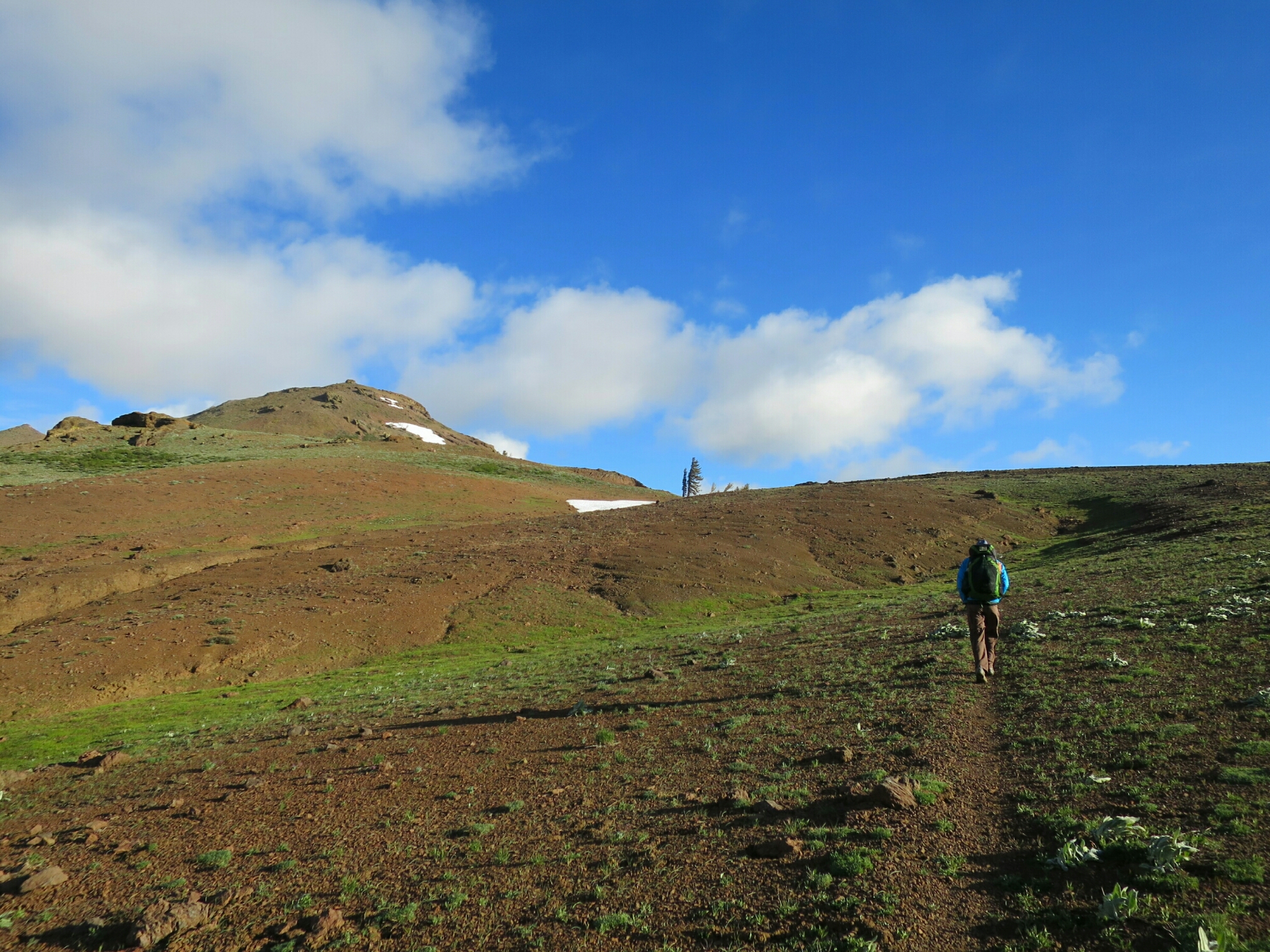 We had to go around a mountain know as the Nipple. It is devoid of vegetation and was exposed to the strongest and coldest wind we have experienced in a long time. Most of the morning we battled the freezing cold wind and quite a few icy snow patches. It was not fun.