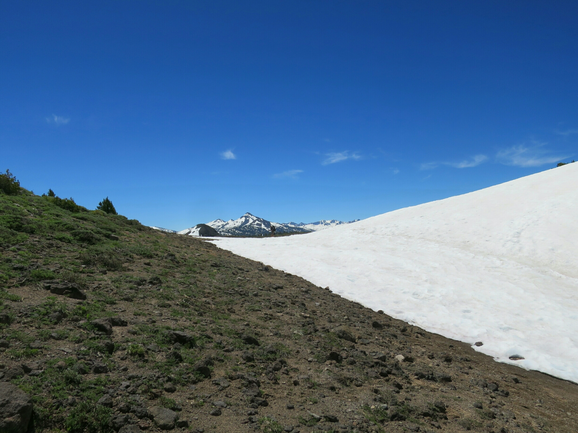 Today we hiked a bit with a Swiss girl we met a few a little while ago at Walker Pass, her trail name is Red Cross (Noemie). She is an excellent navigator. Between the three of us we did not lose the trail too long this morning. We separated at lunch and we followed her footprints in the snow in the afternoon. Very reliable which made the afternoon fly by.