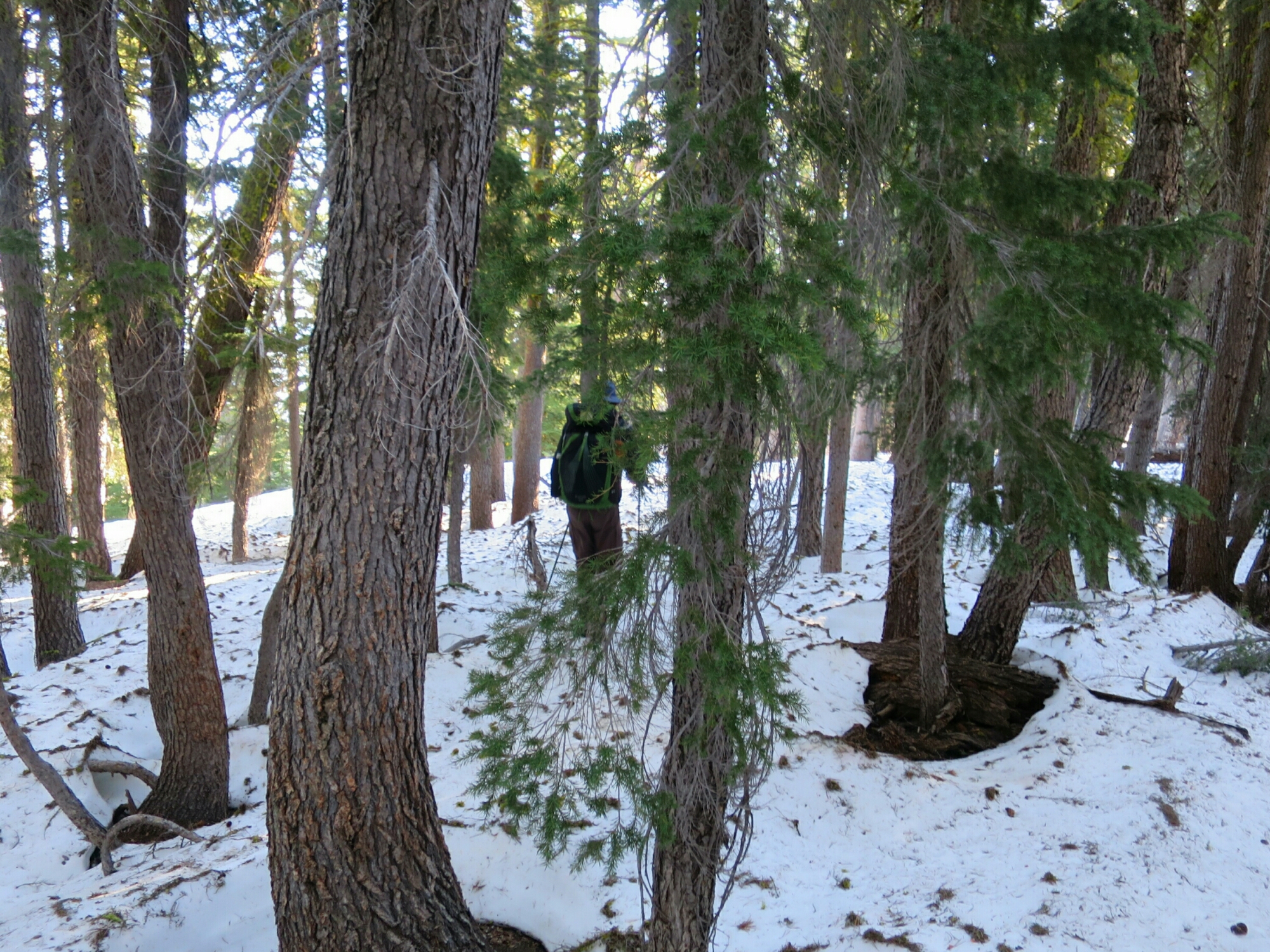 We were up and packed just after 6 am and Hammer confidently predicted we’ll be hitting the highway just after 9. Well the trail had other ideas, it has no easy miles. We were still in the forest and in deep snow which was icy early in the morning. Combined with a steep descent which wound its way down to the valley floor, made for slow progress.