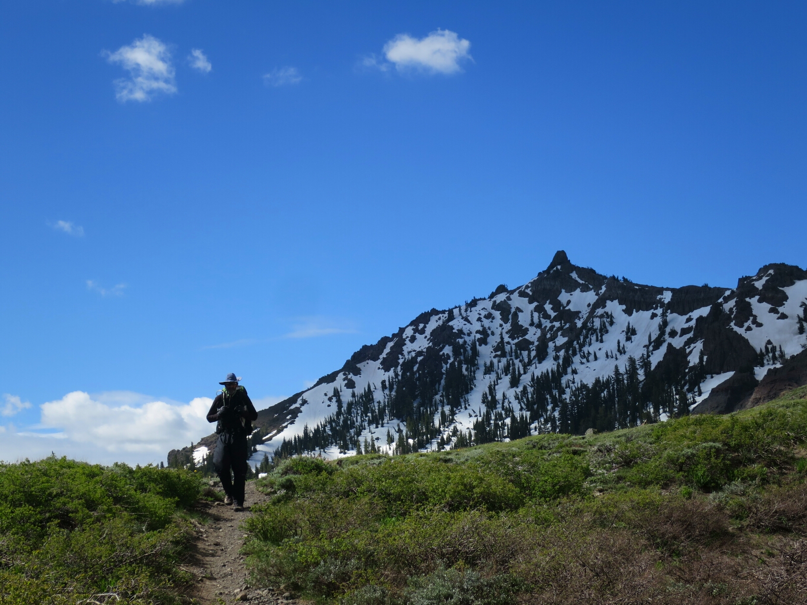 Just before Kinney Lake we followed some footprints which in the end led us off the trail. A bit of cross-country hiking and rock hopping and we were back on the trail. We realized that Red Cross must have gone past while we were off trail. We could see her shoe prints in the snow and we did not see her for the rest of the day. I hope she got her coffee somehow.