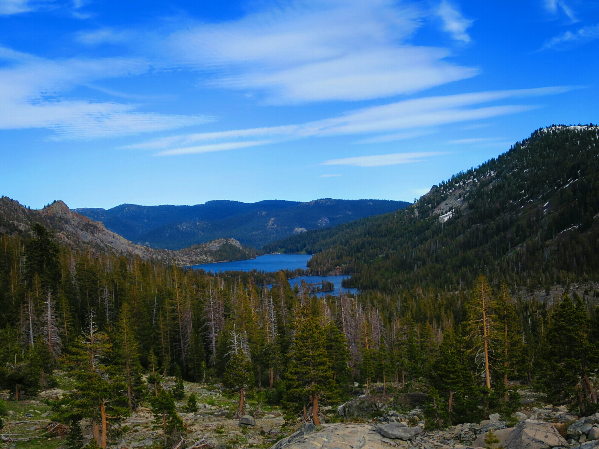 After Echo Lake the trail ascends gently although it was fairly rough underfoot. We bumped into 3 southbound hikers – General, Pebble and Flora – we last saw them at Kennedy Meadows before they flipped north to avoid the snow. I guess we’ll be seeing a few more in the coming days.
