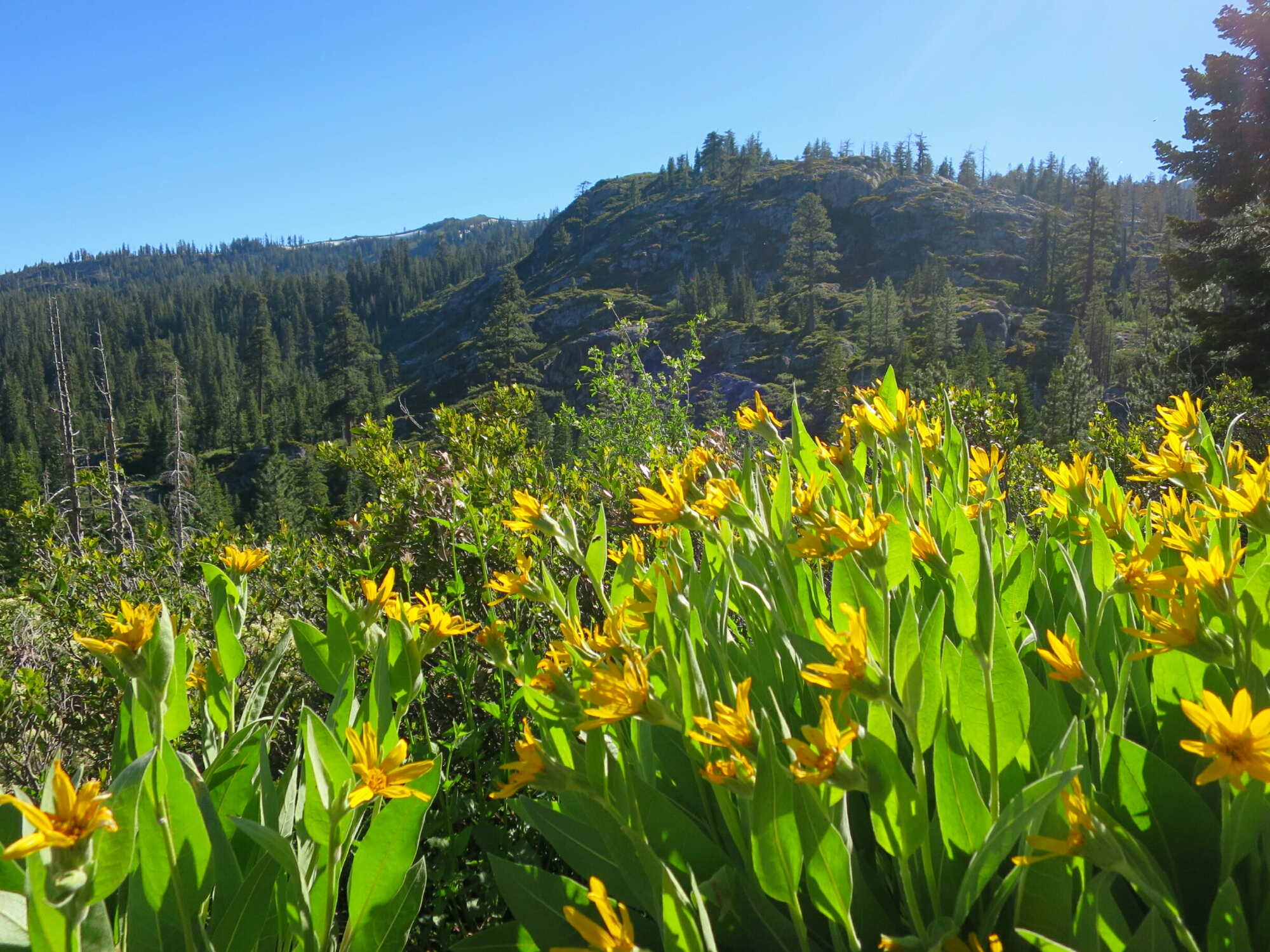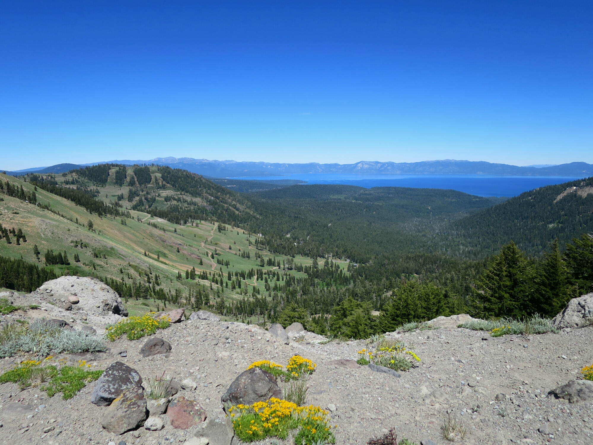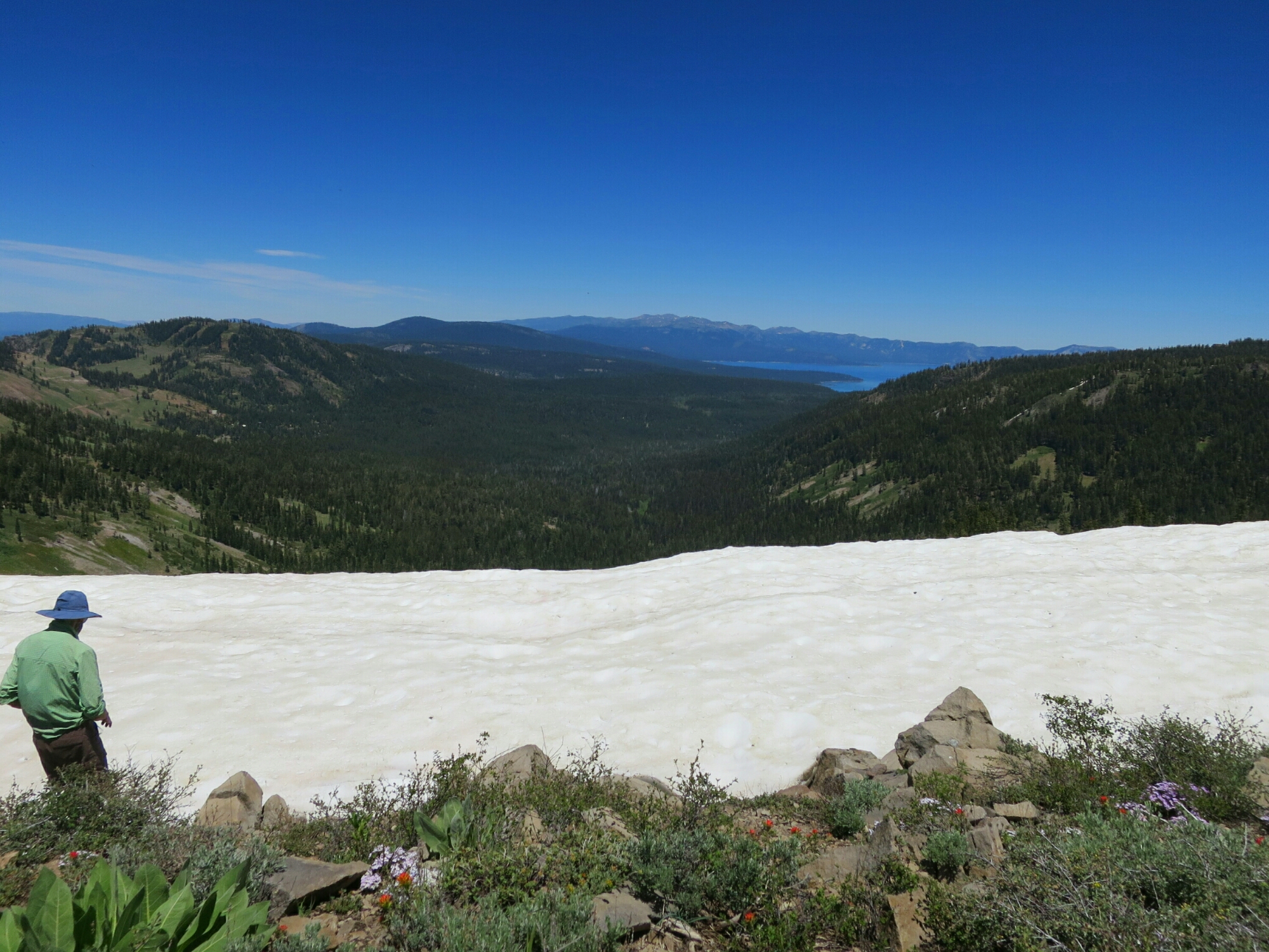 We hiked on the ridge for about 4 miles with fabulous views east towards Lake Tahoe and west over lush green valleys fringed by mountain peaks.