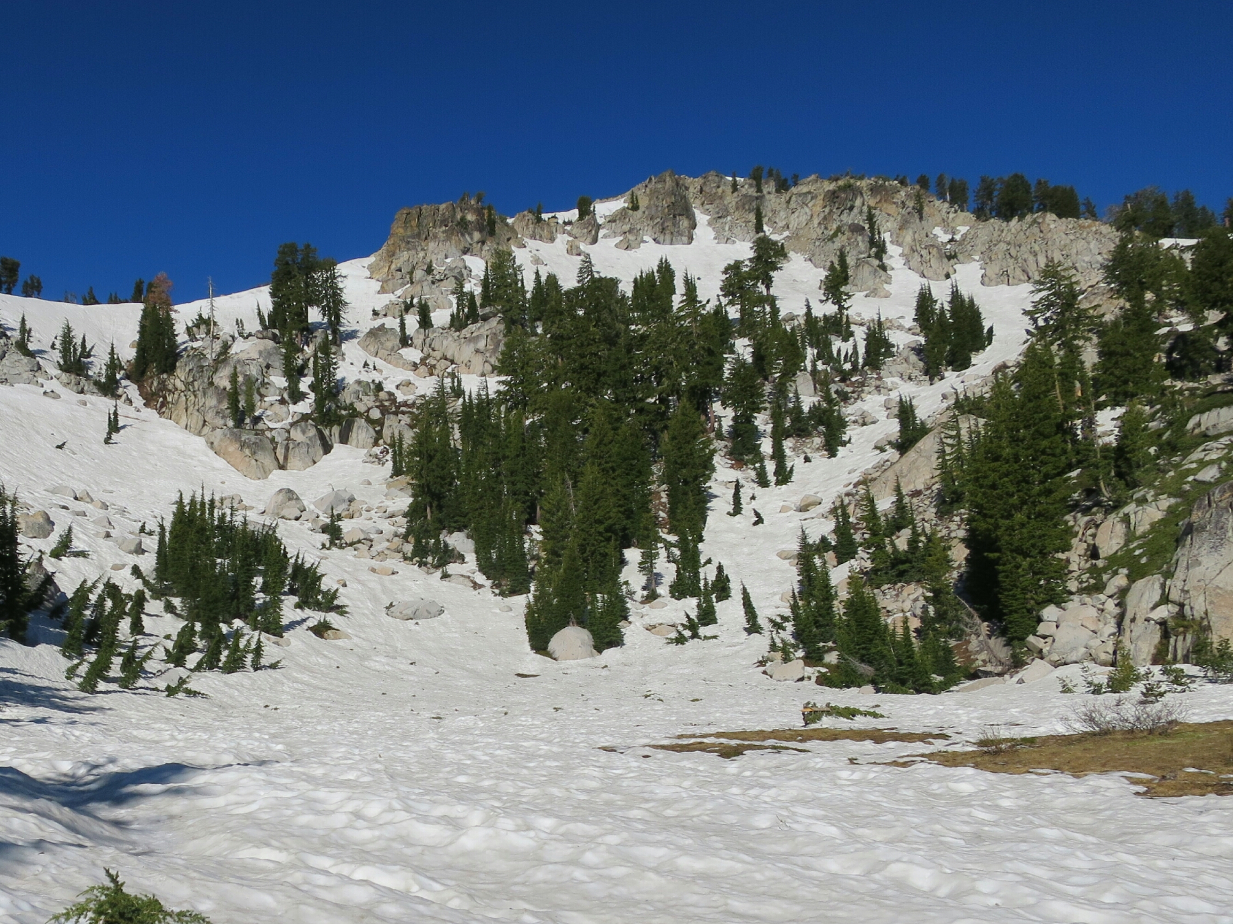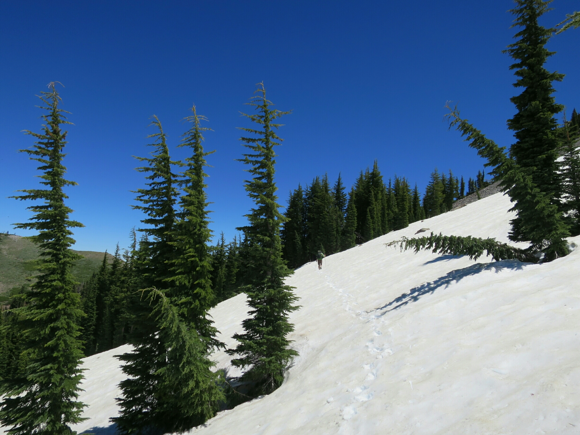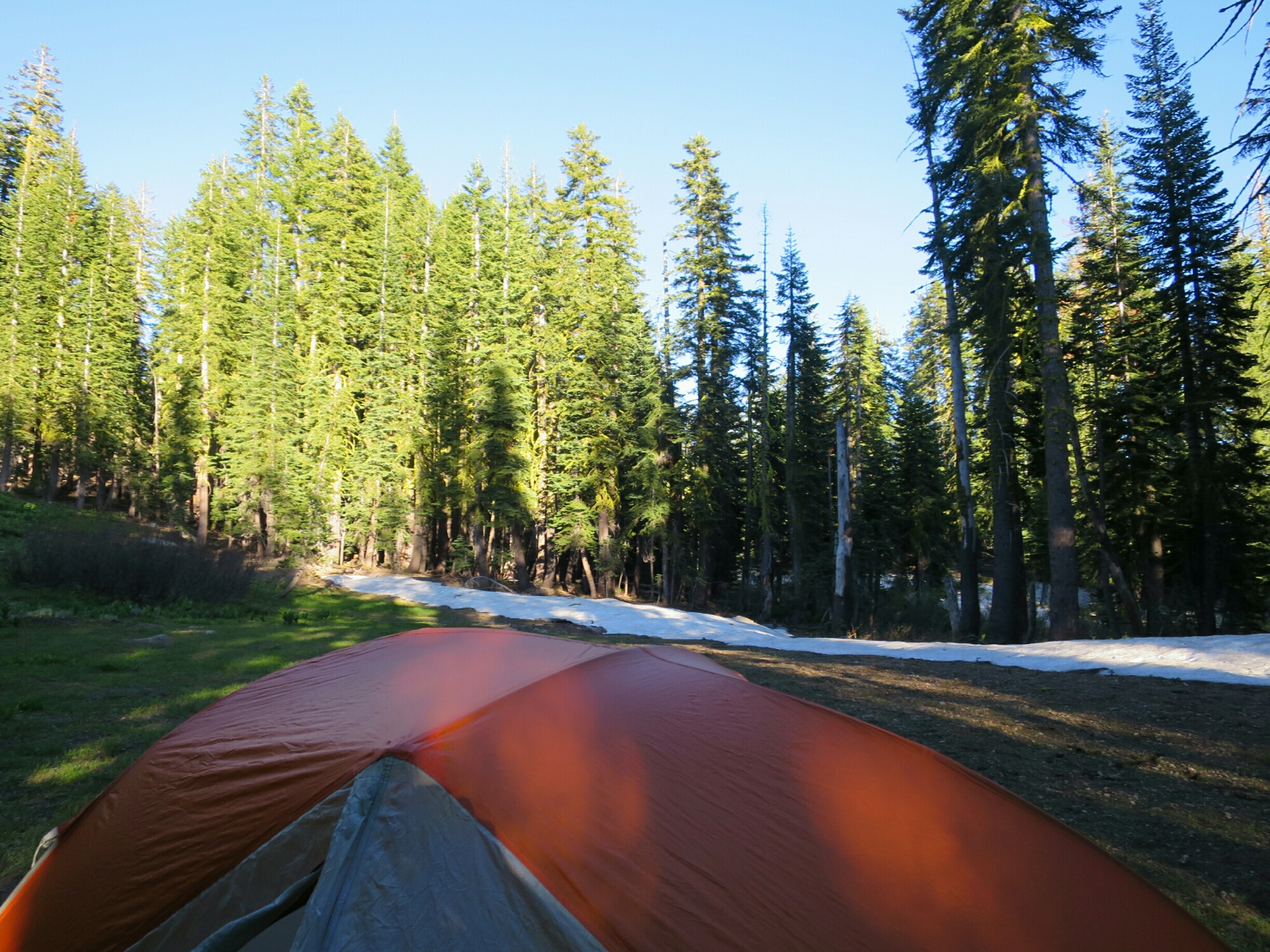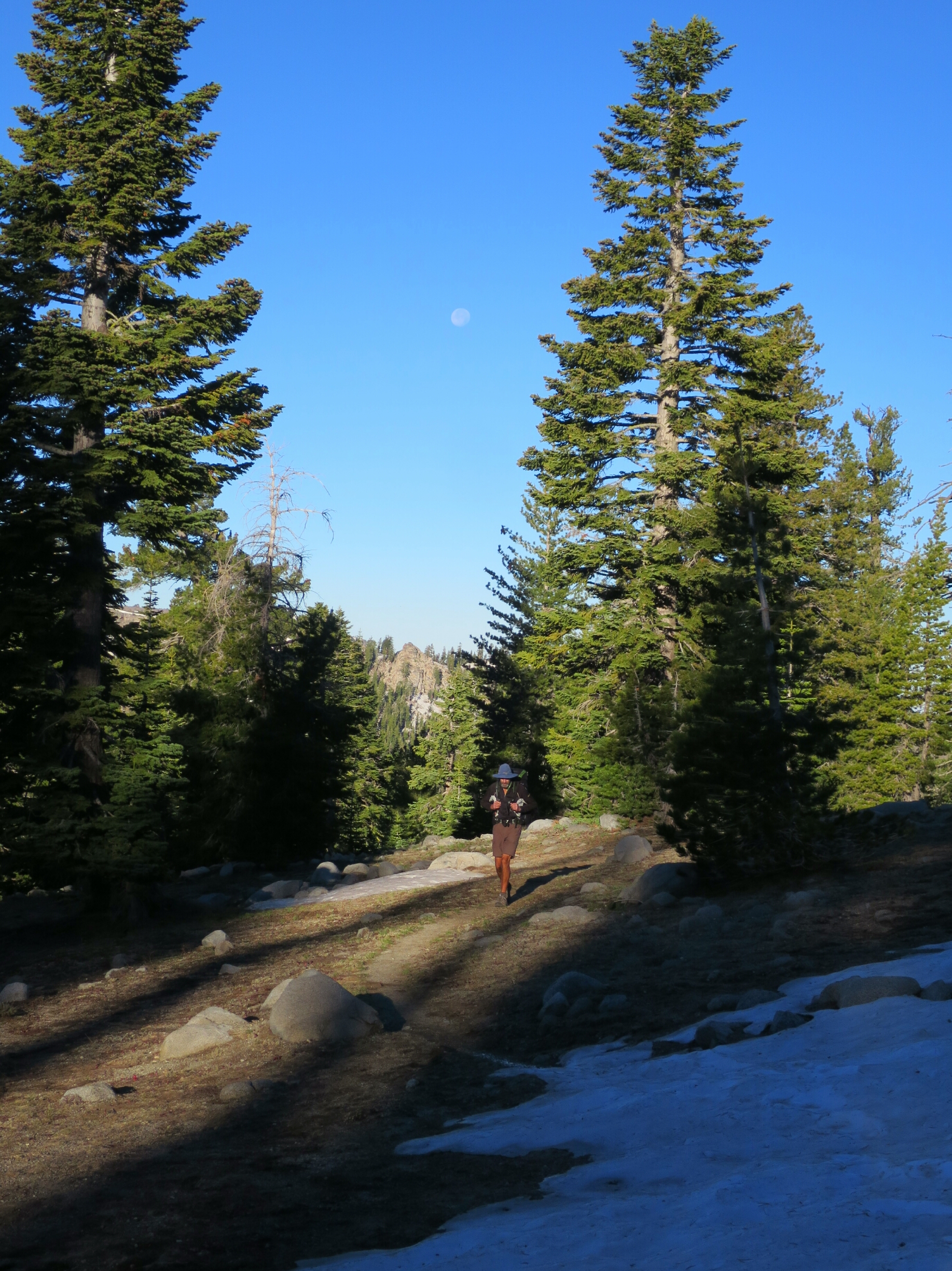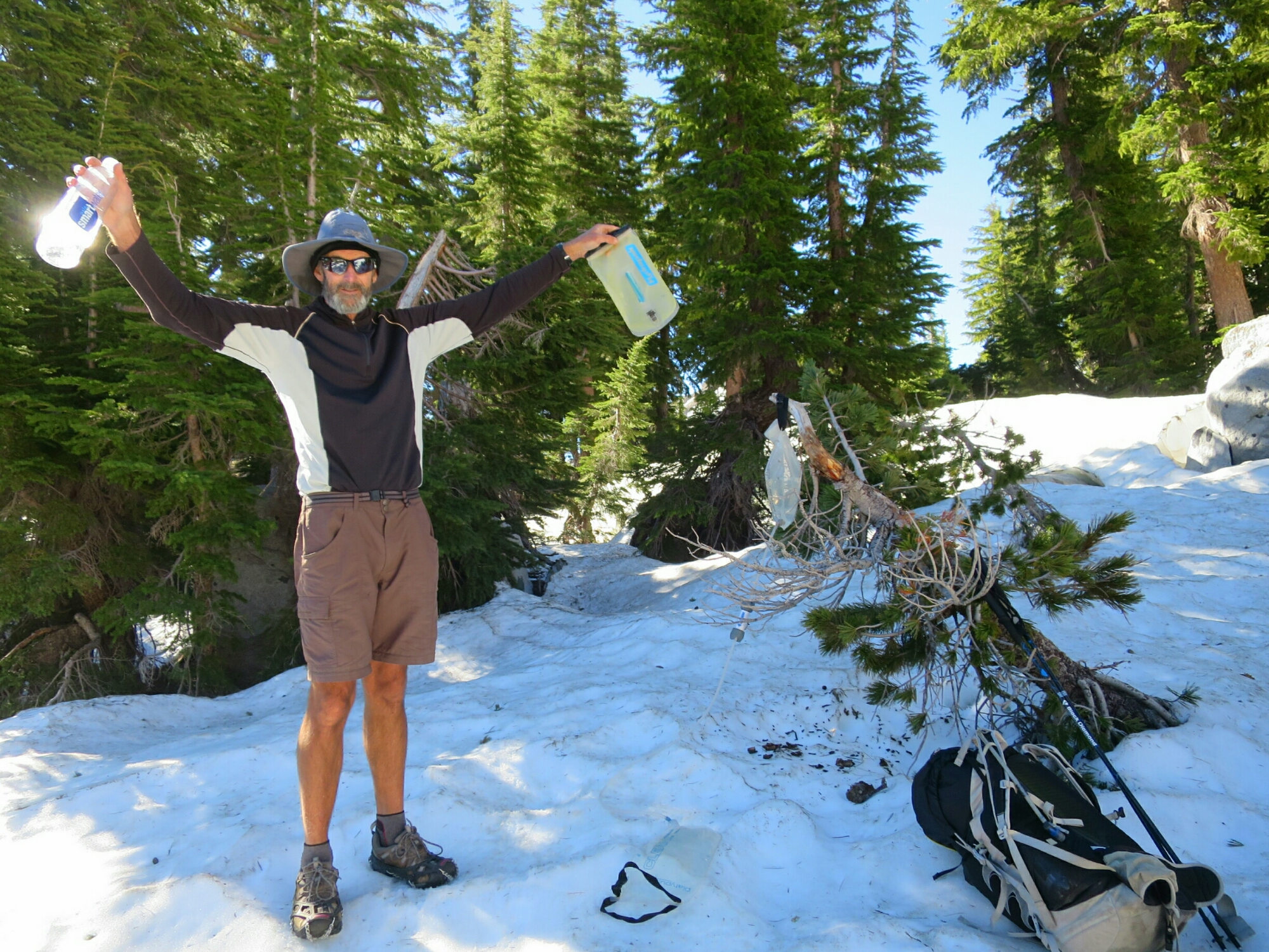 At Squaw Valley Creek we filtered water to carry for the next 16 mile dry stretch. The irony of needing to carry a lot more water while surrounded by so much snow was not lost on us. As it turned out the dry stretch was much shorter as this early in the season quite a few creeks between Squaw Valley Creek and Tinker Knob were flowing.