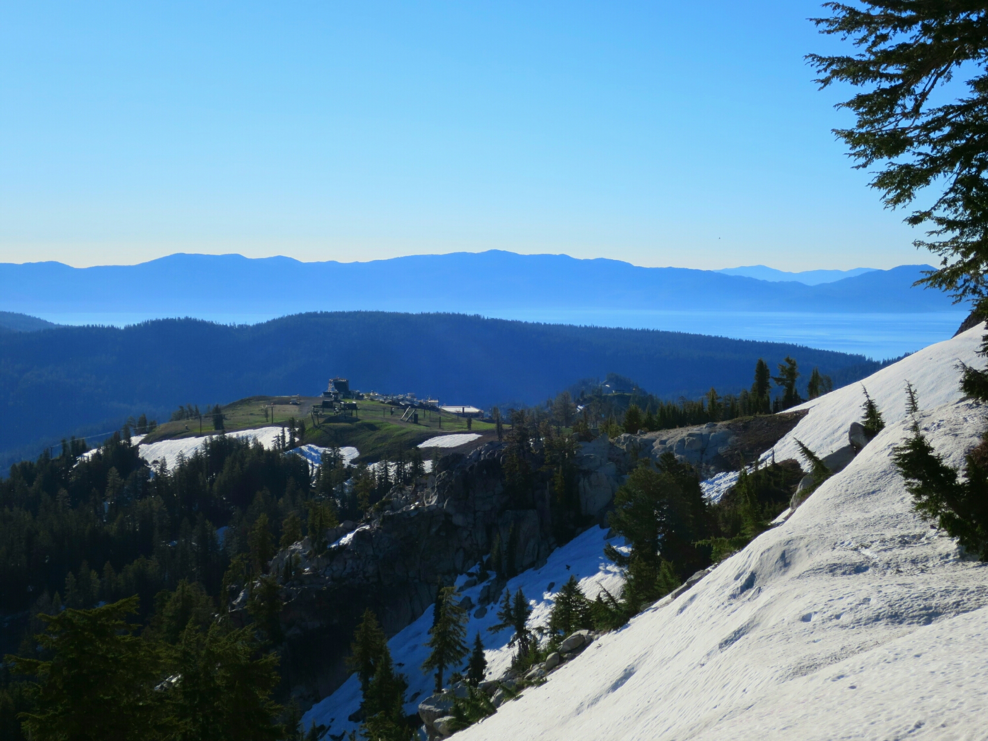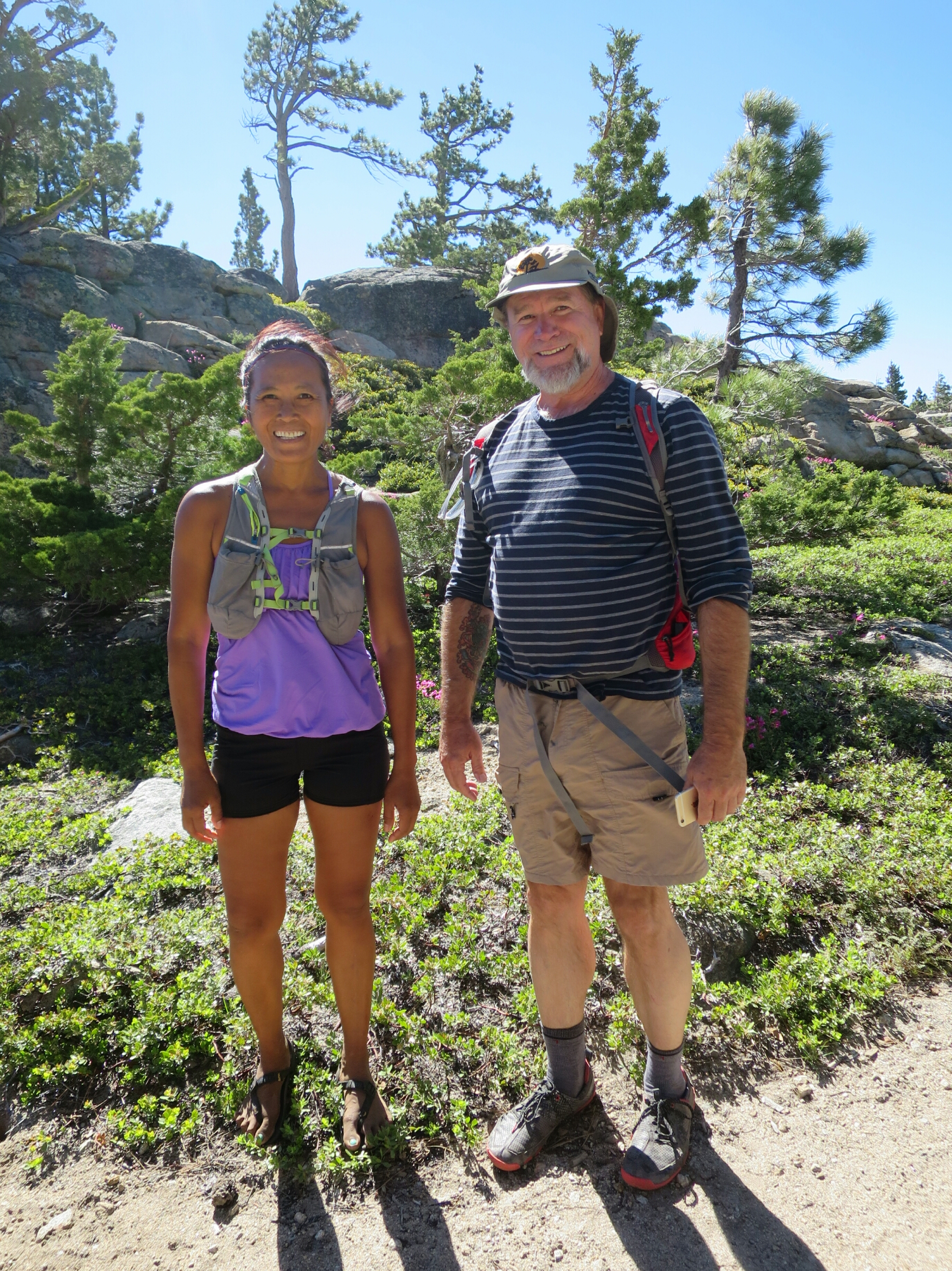 We left our campsite with about a mile of uphill hiking to reach the top of the Squaw Valley ski area. The view of Squaw Valley and Lake Tahoe beyond were splendid this morning. Everything seemed to shimmer in the morning light. We discovered we had phone reception from our high vantage point so we took the opportunity to check on messages and post updates while enjoying the view.