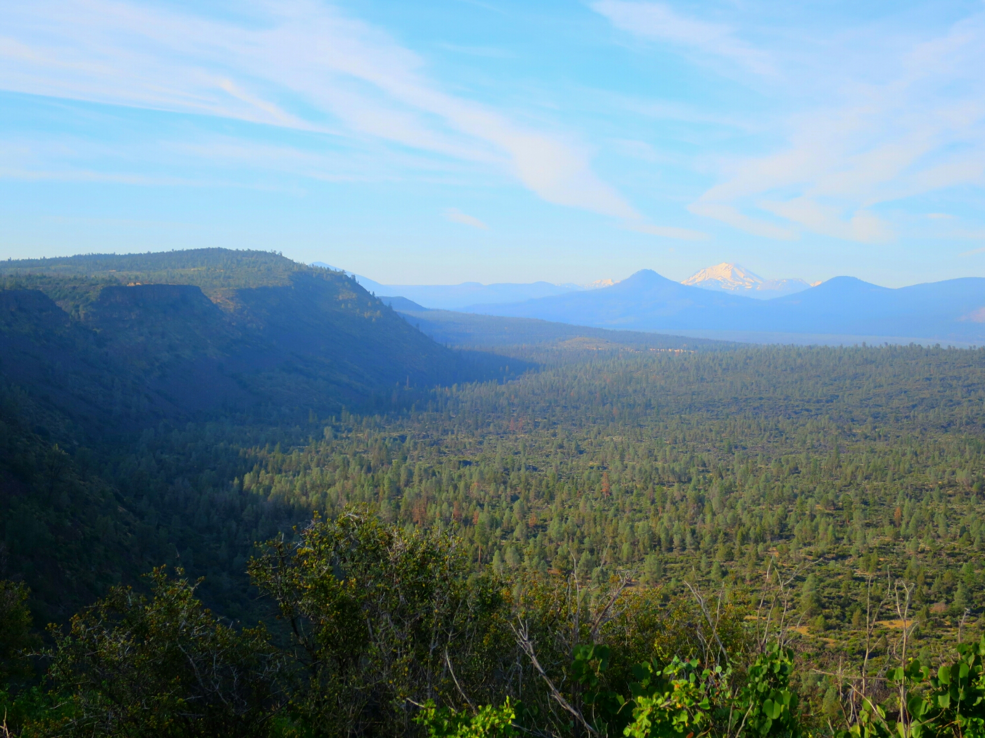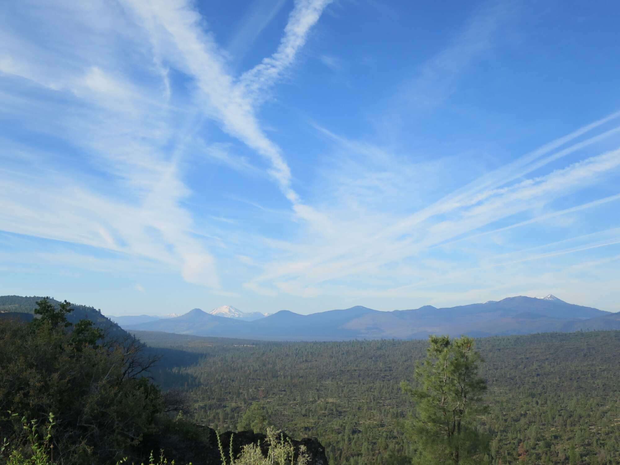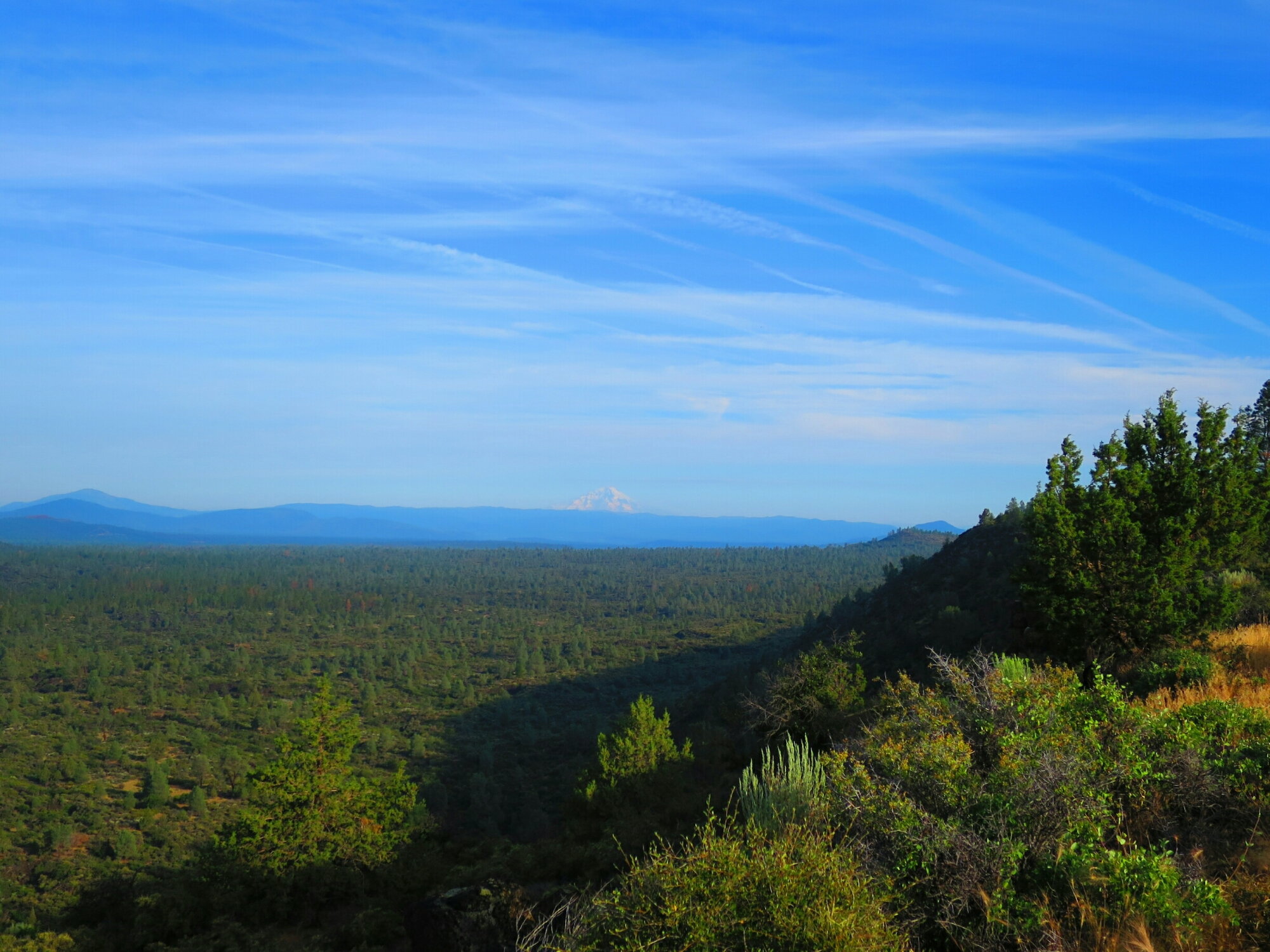 The morning was warm already and the breeze was not as strong as yesterday. Mt Shasta was visible for a brief period in the early morning before it disappeared in the mist. By the time we descended off the rim and started to cross the valley floor it was very hot and we were walking on lava rocks. This was not very comfortable on the feet as both our shoes are well past their use by date.