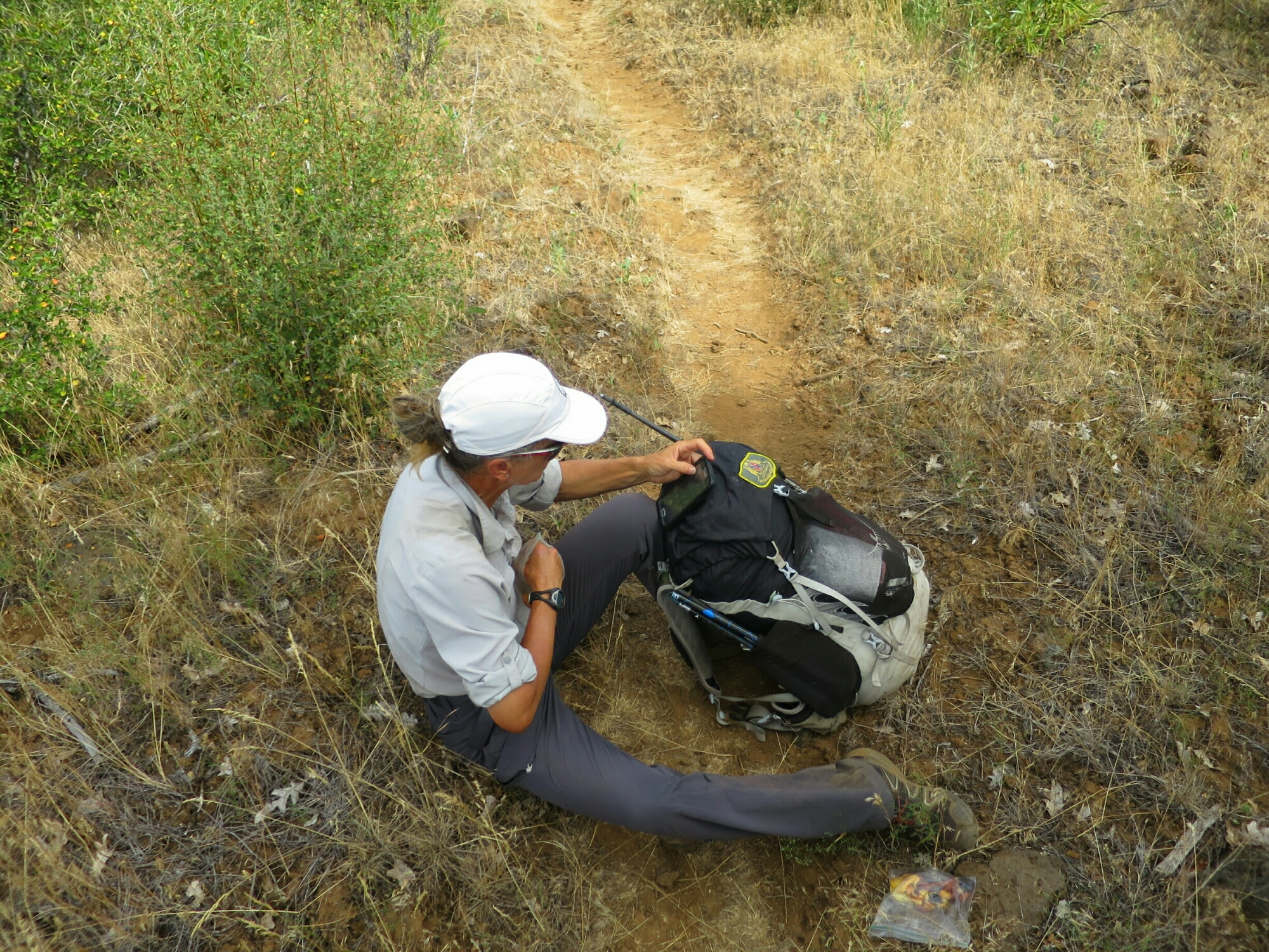 We broke camp quickly to escape the mosquitos. Our morning ritual is fairly constant. I usually wake up at 4.30 and make a cup of coffee which I like to have while it’s still dark outside. I love listening to the sounds of the day coming alive while still tucked up inside my sleeping bag. I make Hammer a cup of hot chocolate when he wakes just after 5. We then have our breakfast which is always raw oats mixed with dried fruit and a little cinnamon soaked in water overnight. It tastes like Bircher muesli. In the Sierras we cooked the oats just to have something warm to eat. We roll up our sleeping mats and bags and pack up our packs, fold down the tent and are usually ready to go just after 6 am.