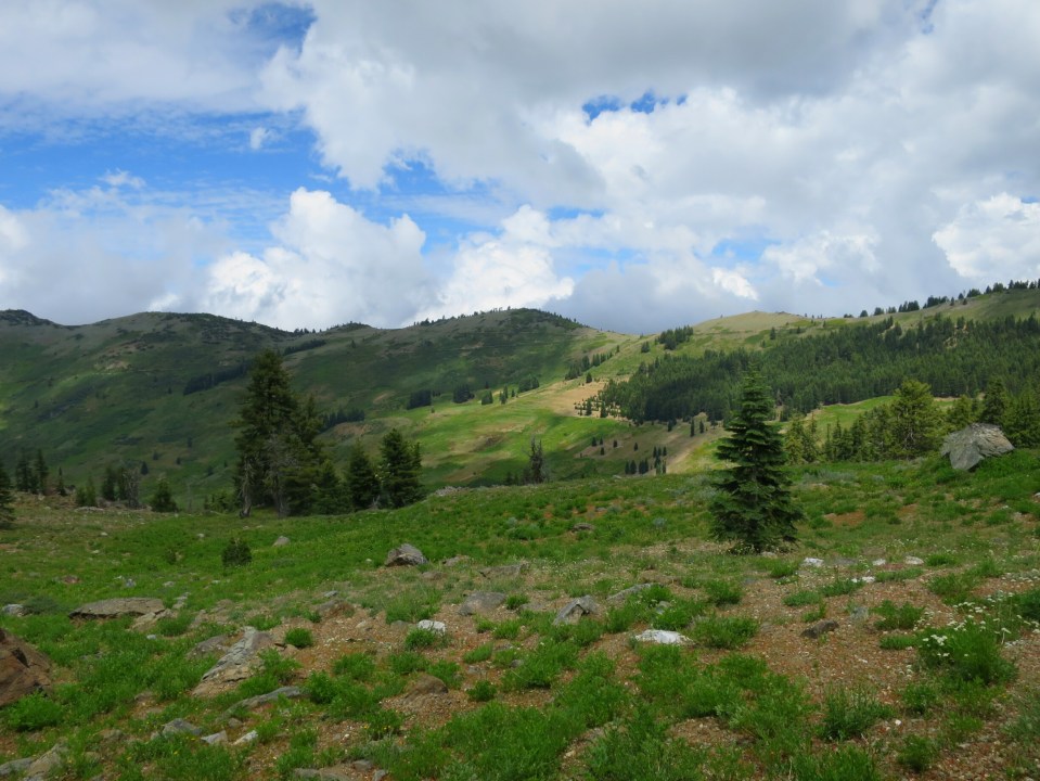 Our first impressions of Oregon based on the first 5 or so miles was of a rolling green countryside. The hills were studded with the white candle like flowers we had seen only a few days ago for the first time. And Mt Shasta stood high above the surrounding landscape.
