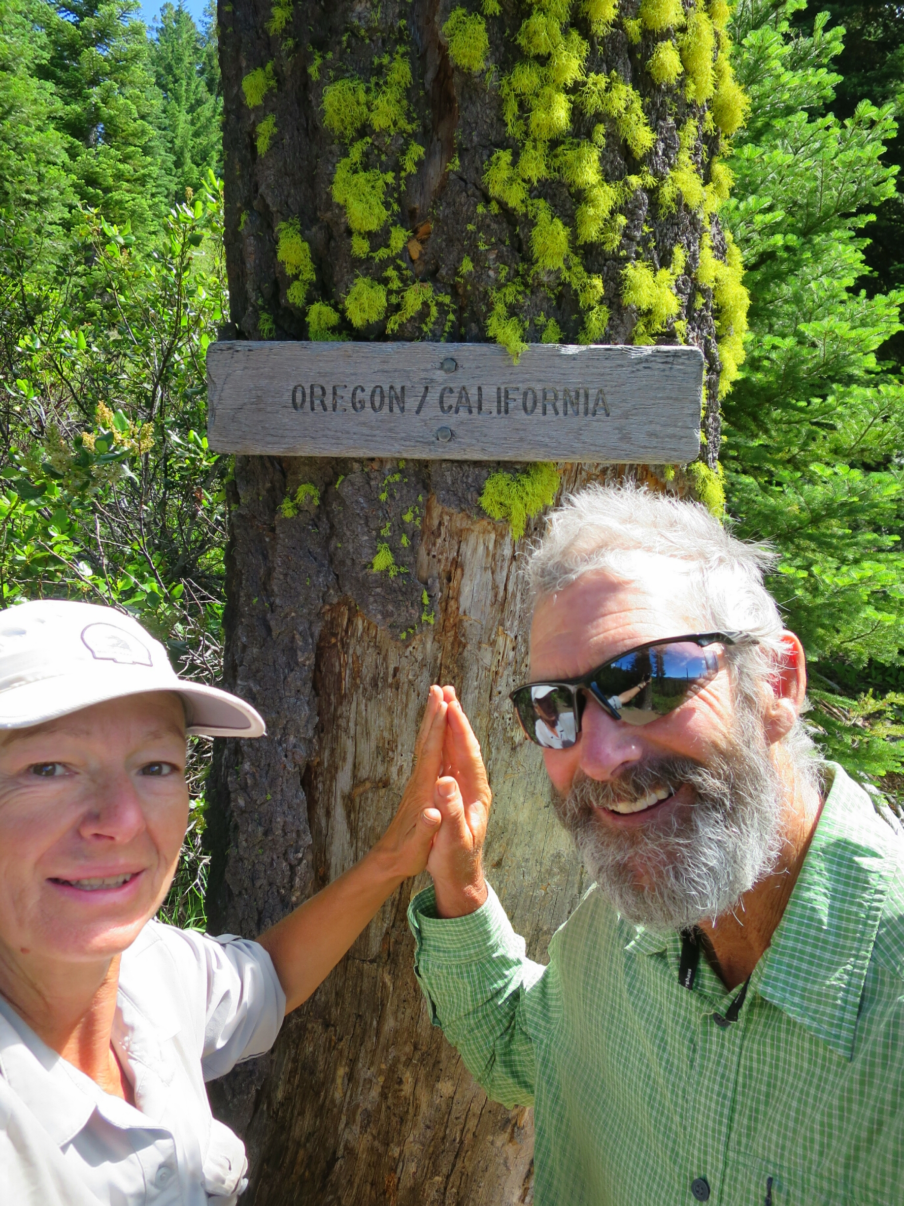 From our campsite we had just under 10 miles left to hike in California. And by 11 am we were done. We have hiked a total of 1,689 miles (2,700km) in just a bit over 3 months. It seems to have gone by so quickly. We signed the hiker register and sat near the border sign for a little while before we opened up the Oregon gift.