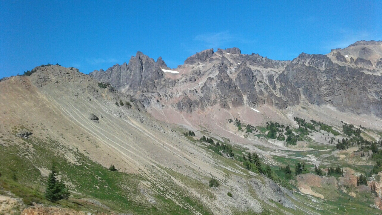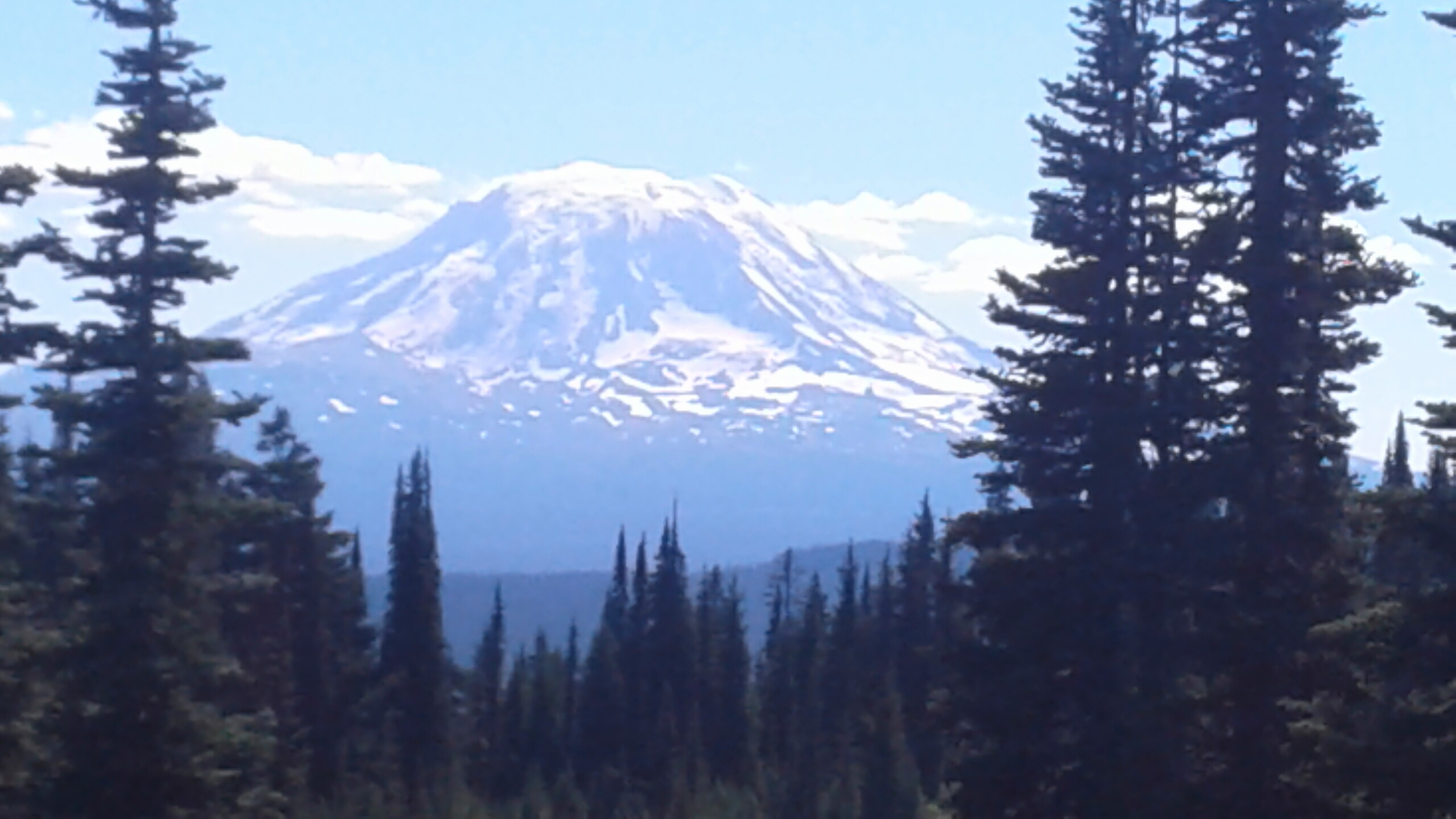 The trail led through the Yakama Indian Reservation which was a beautiful valley with waterfalls and an unusual rock formation. It was like columns of rock laid on their side to build a high wall. As I was approaching this area I could hear some beautiful chanting and singing. It was a girl walking her dog and she was singing at full volume. We exchanged pleasantries and I told her how magical it sounded as I approached and that I didn’t want to interrupt. I continued the climb to Cispus Pass, she continued to sing adding so richly to my enjoyment. A magical experience in an amazing setting.