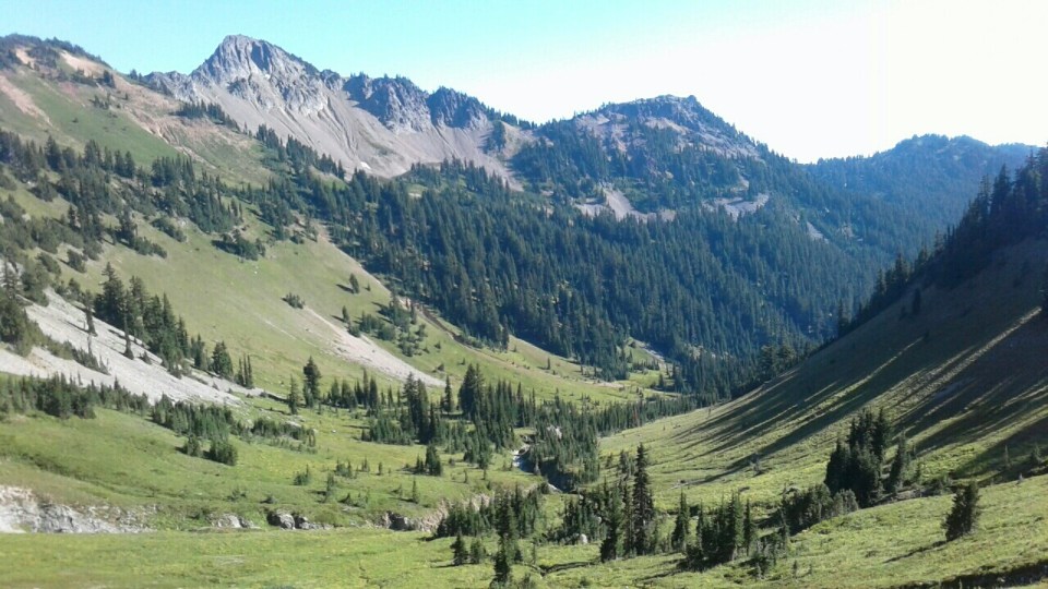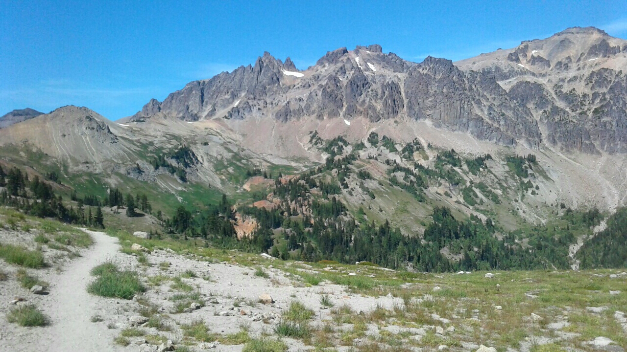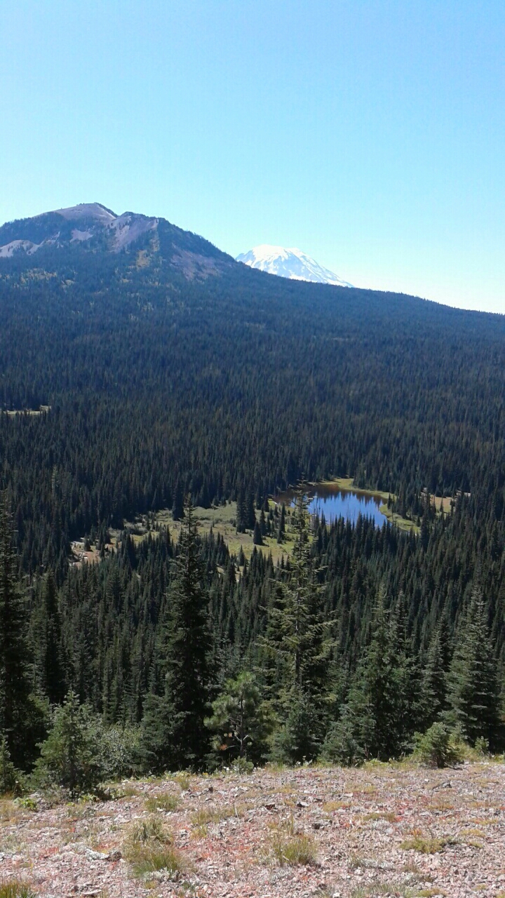 Upon entering the Goat Wilderness Area, the trail passed numerous lakes and was mainly in forest. Then all of a sudden Mount Rainer would appear. When I would try to take a photo with the phone camera, it would not show up in the photos. I am already looking forward to Corky’s photos of this section of the trail next year.