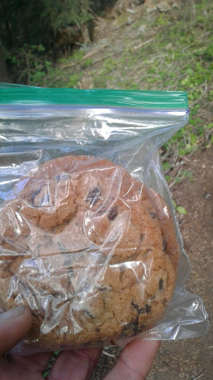 Shortly afterwards I came across a PCTA trail crew of 9 doing significant work on the trail and they filled me in a little more on the trail race. I thanked them for the awesome work that they do and as I was leaving one of the ladies said grab a bag out of the pack on the side of the trail. It contained 2 large home baked chocolate chip cookies which were absolutely delicious. I really felt I should be giving them some trail magic rather than the other way around, as the work they do on the trail is absolute magic.