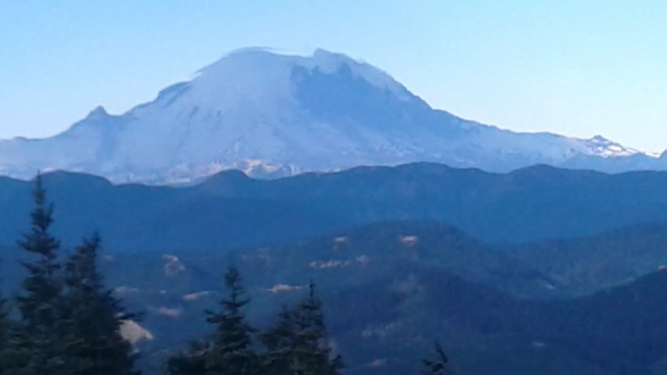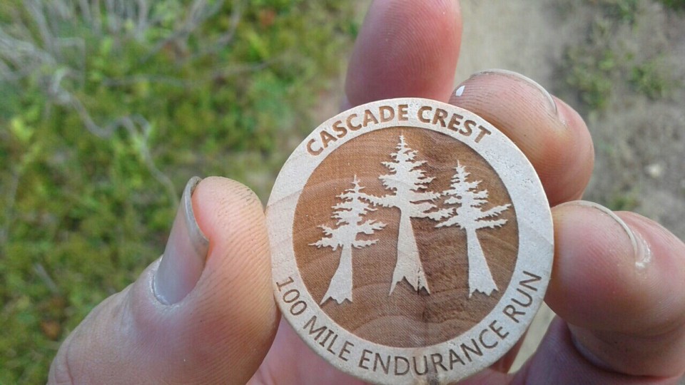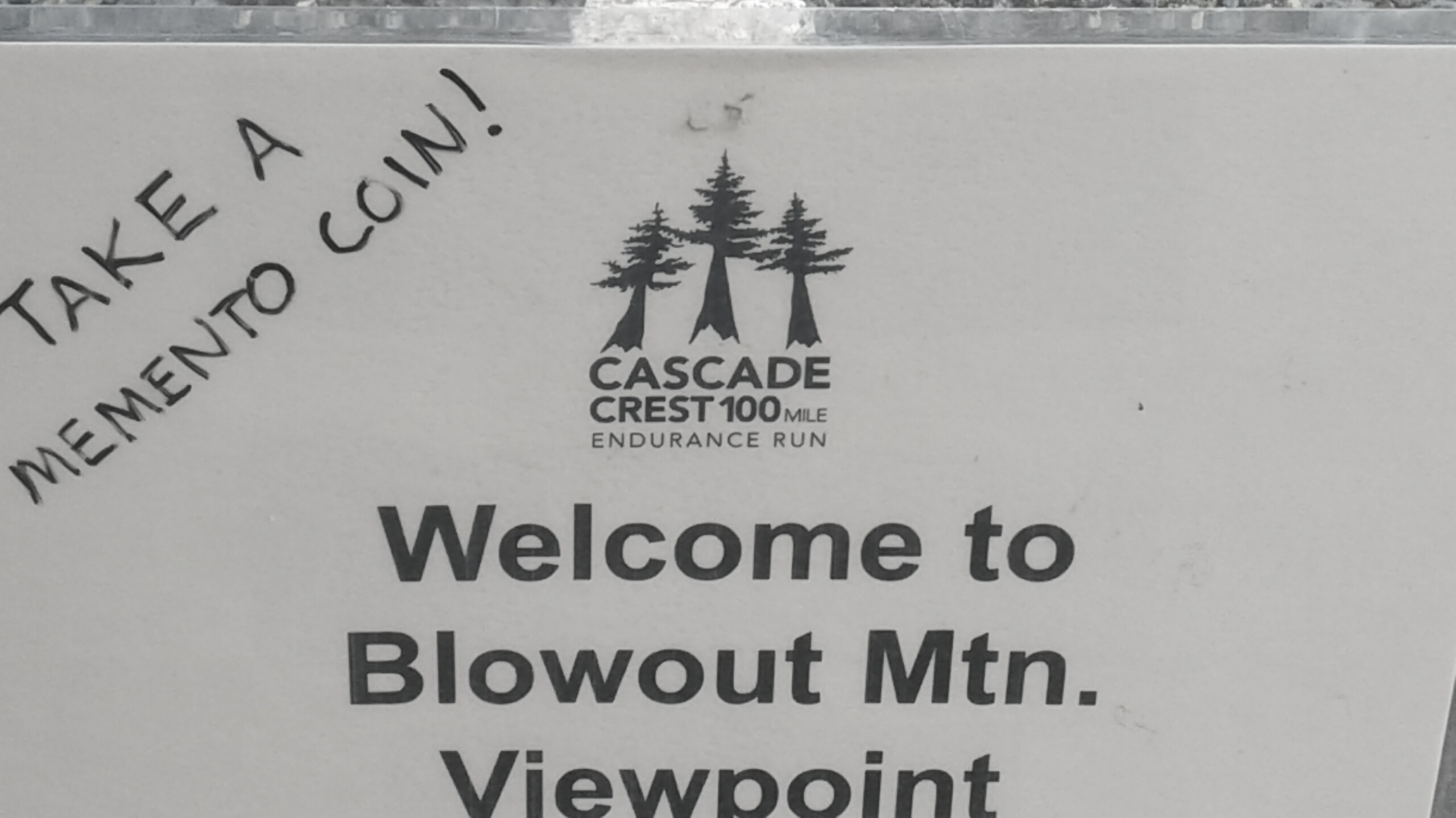 I was about 4 miles into this morning’s hike when I came across a sign indicating that the Cascade Crest 100 miler was joining the PCT. I was quite excited by the prospect as I love trail running and supporting trail runners. A little further down the trail was a sign saying viewpoint 400ft, not officially part of the course but oh so worth it and so it was, with 360 degree views and with Mount Rainer very boldly dominating to the west. There was also a wooden coin the runners could collect as a momento, which I photographed.