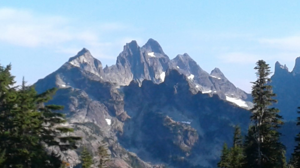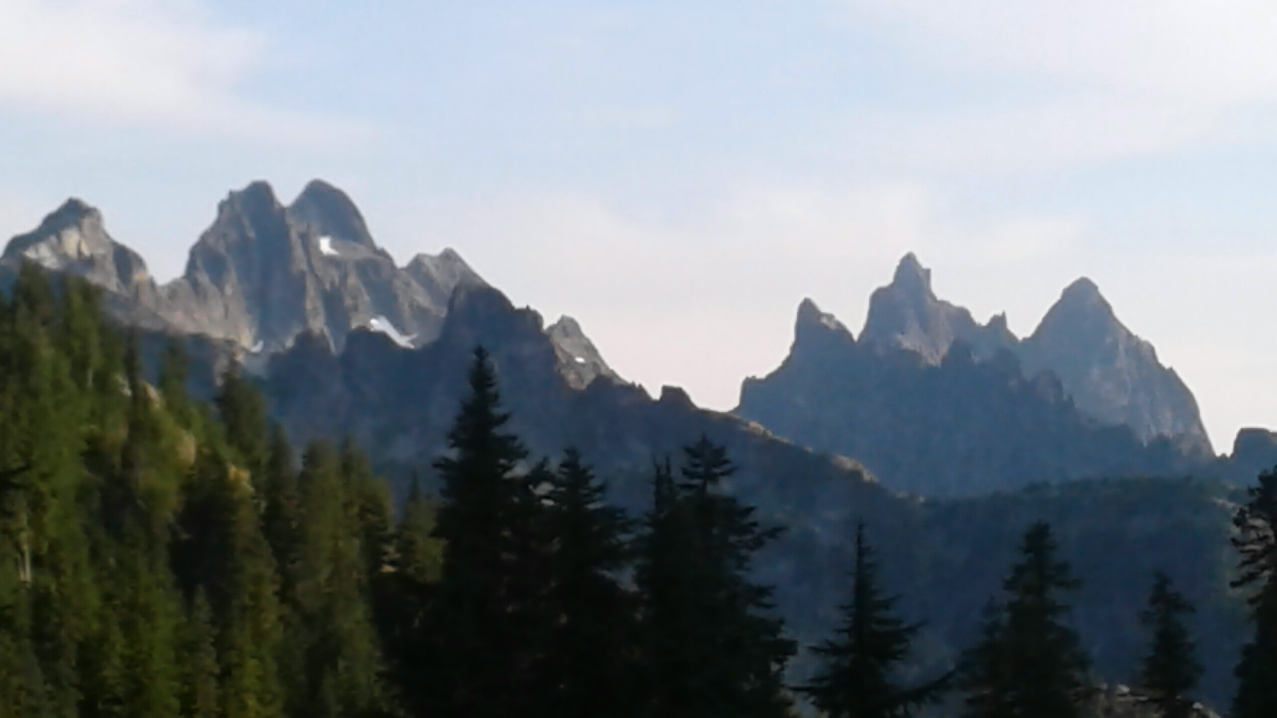 The trail was passing through the craggy peaks of the North Cascades and there was a fair amount of clouds about. A change in the weather is predicted with some rain forecast. The state of Washington has been so dry that the whole state has a fire ban. So perhaps a bit of rain will be good.