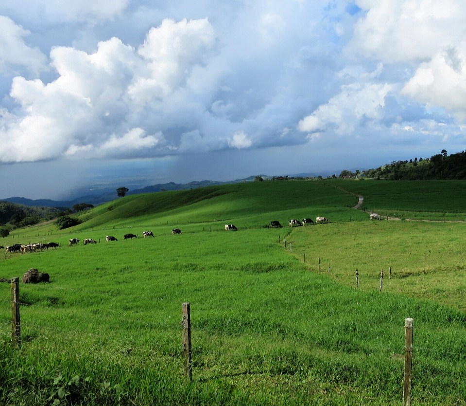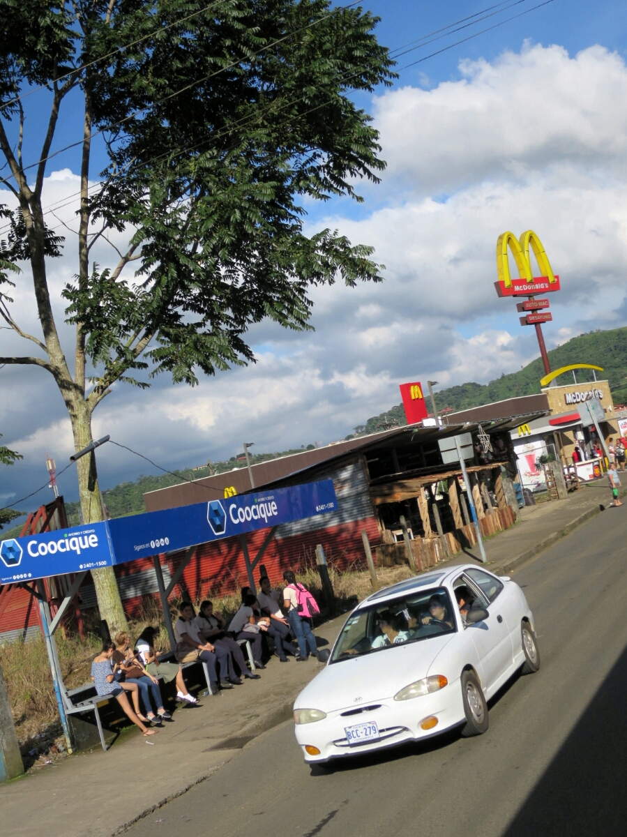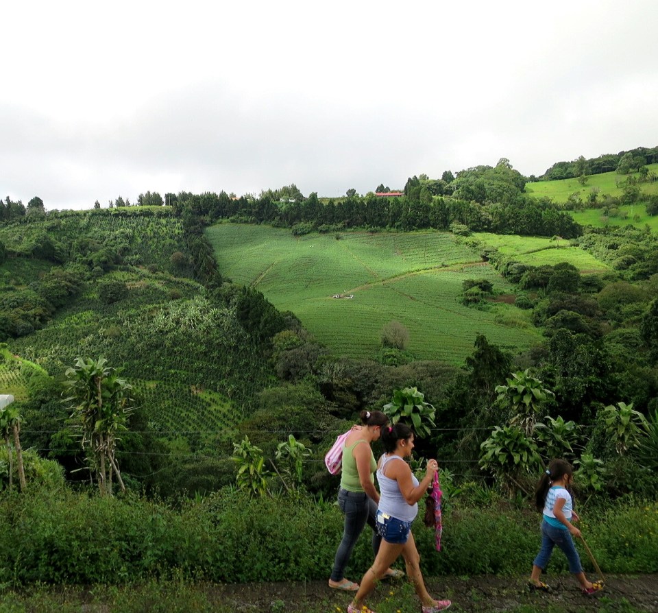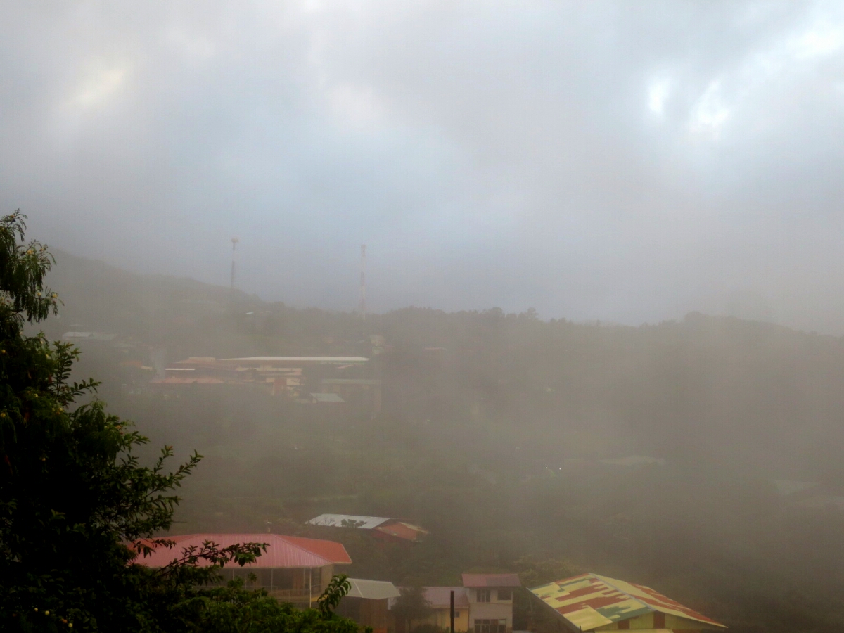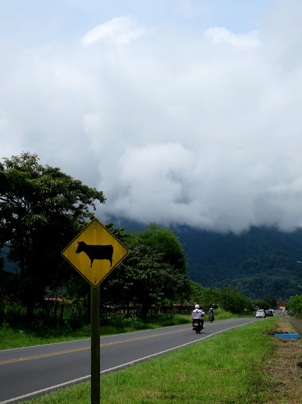 The bus left San Jose just before mid-day. Took some time to get out of the city before we were out in the countryside. As the bus started to ascend into the mountains we were passing through incredibly lush green fields with occassional small towns along the way.