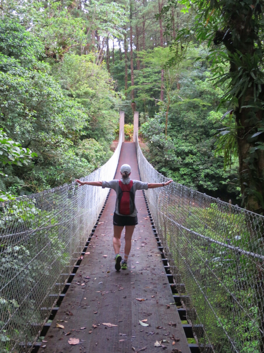 The bus trip from Lake Arenal to Santa Elena was interesting. The whole trip was on unsealed roads that were heavily eroded. The bus got stuck a few times requiring us to get off. We stood around in the rain while the driver took several runs to get over the ruts. On the bus we met a Brisbane girl travelling through Costa Rica and Nicaragua after competing in Kona at the Hawaiian Ironman a couple of weeks ago.