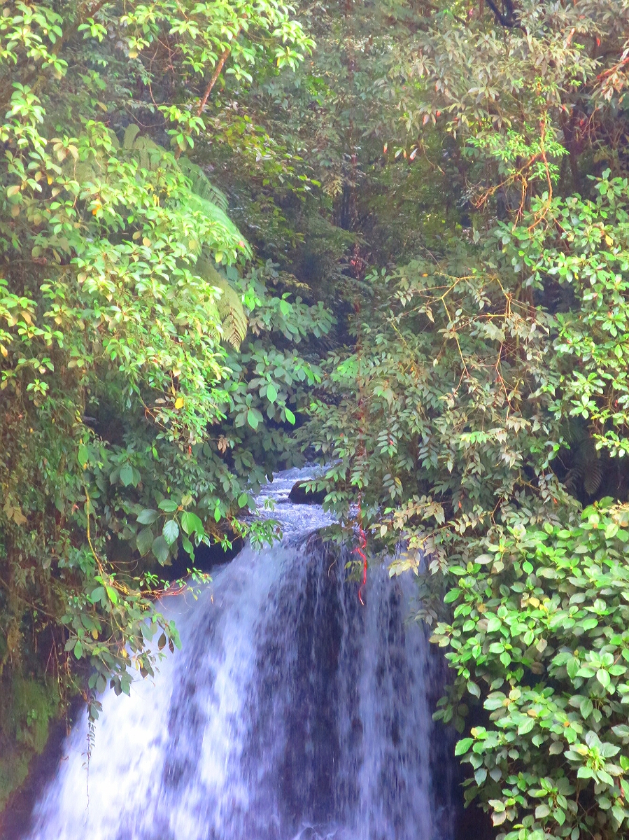 So wonderful to wake up and hear the tinkle of a water fountain outside our room. And as wakefulness fully returned remembering that we were in the tropics. It was warm and very humid. We walked around La Fortuna with sweat dripping down our shirts.