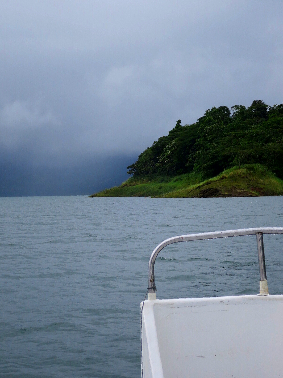 Today we took the jeep-boat-jeep option to get from La Fortuna to Santa Elena. The weather was kind of nice although rain was never far away. The boat trip across Lake Arenal was very smooth. Low hanging cloud covered much of the surrounding mountainsides. It was easy to see why Santa Elena and the nearby village of Monteverde are famous for their cloud forest.