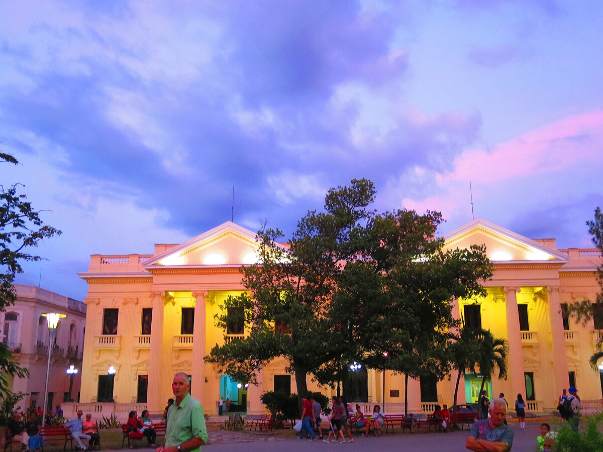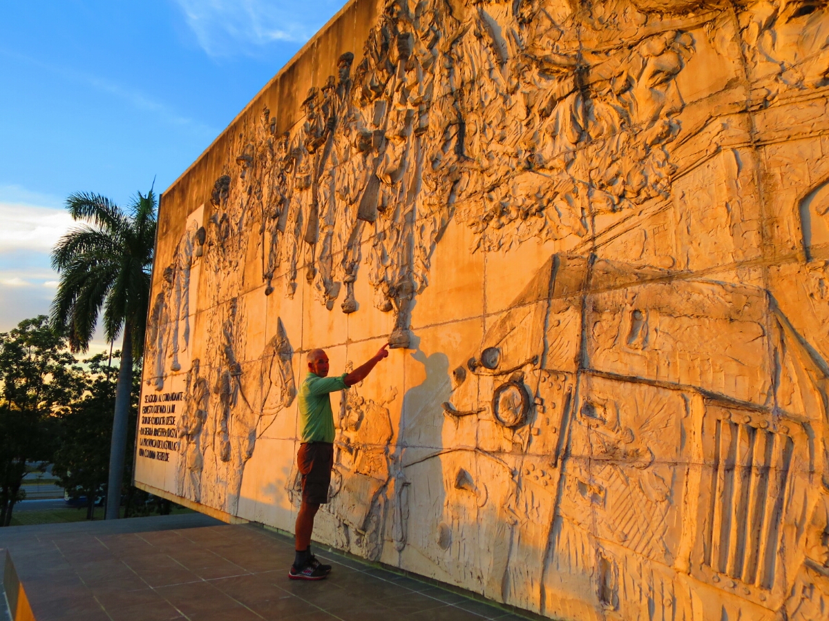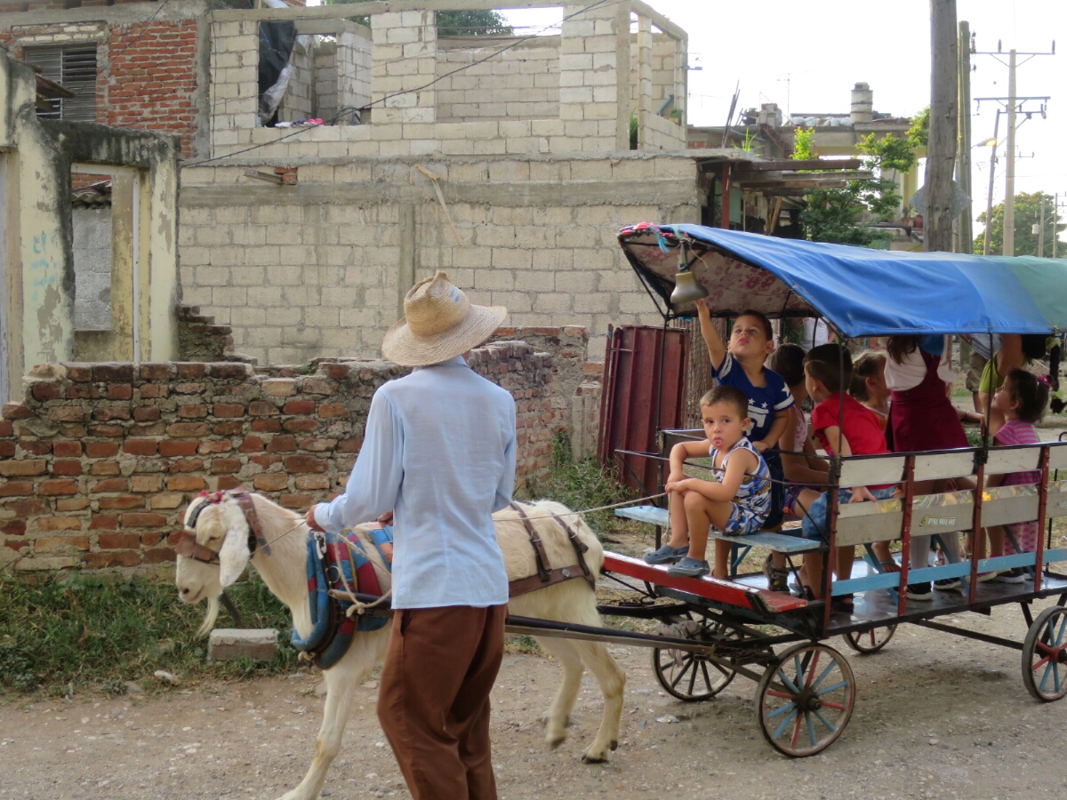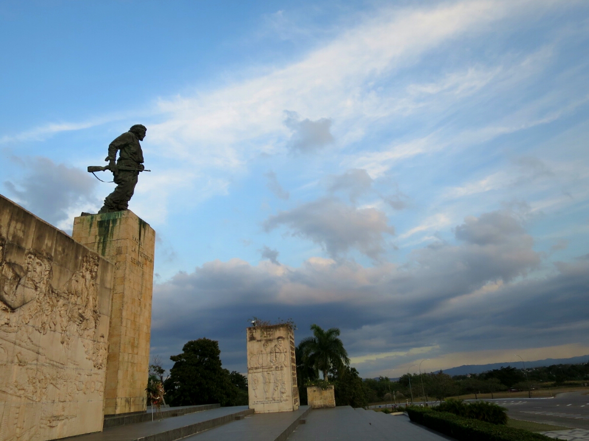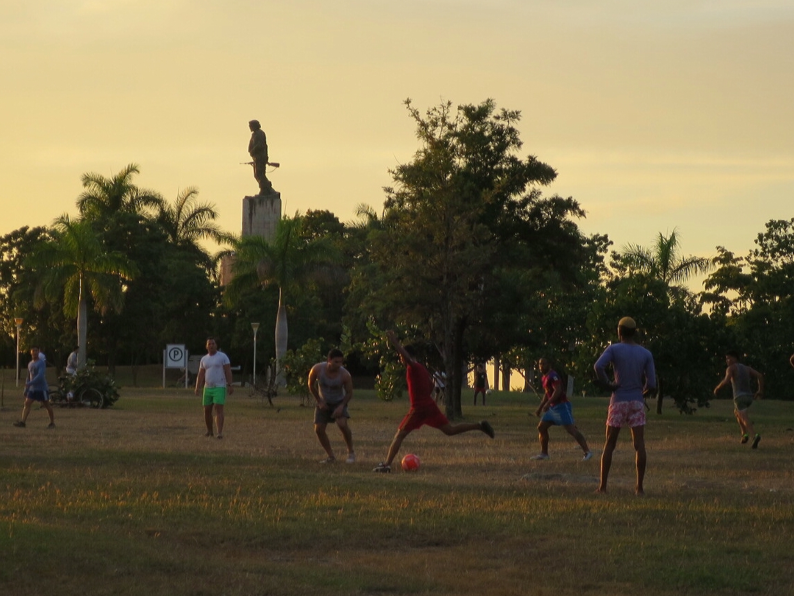 Our impressions were at first that everything reminded us of Costa Rica – the tropical warmth and the streetscape. Except that here the streets were not crowded and did not hum with car noise and tooting of horns. The upside of low car ownership. We passed many horse drawn carts and kids taking rides on goat drawn carts. Santa Clara is poor relation to the rest of the country. Its main attraction is its recent revolutionary history. Che Guevara is the revolutionary who turned the course of Cuban history here in Santa Clara. We walked over to the Che Guevara memorial which was not far from town centre. Standing on a small hill it looked even more grandiose in the late afternoon setting sun. Boys were playing soccer at a park nearby and families were out enjoying the open space. Santa Clara is a small, very relaxed and peaceful city with many homes that are in dire need of significant repairs.