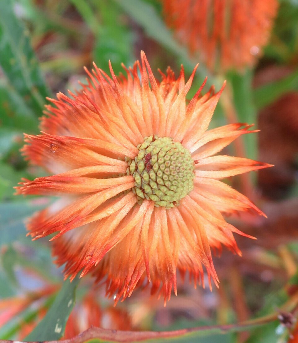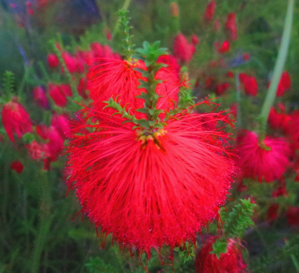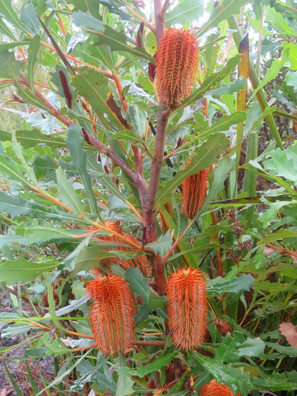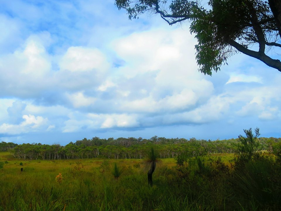 Despite the rain it was quite a pleasant walk to Lake Meringup campsite. The rain was not heavy just persistent. I could hear the roar of the ocean, like a distant jet engine rumble, hours before I reached the campsite. While the campsite is located by a lake, it is not far from the sea. The trailside vegetation was mainly low growing or shrubs with some Banksias and a beautiful bottle brush plant. Its bright red flowers looked like a ballerinas toutou.