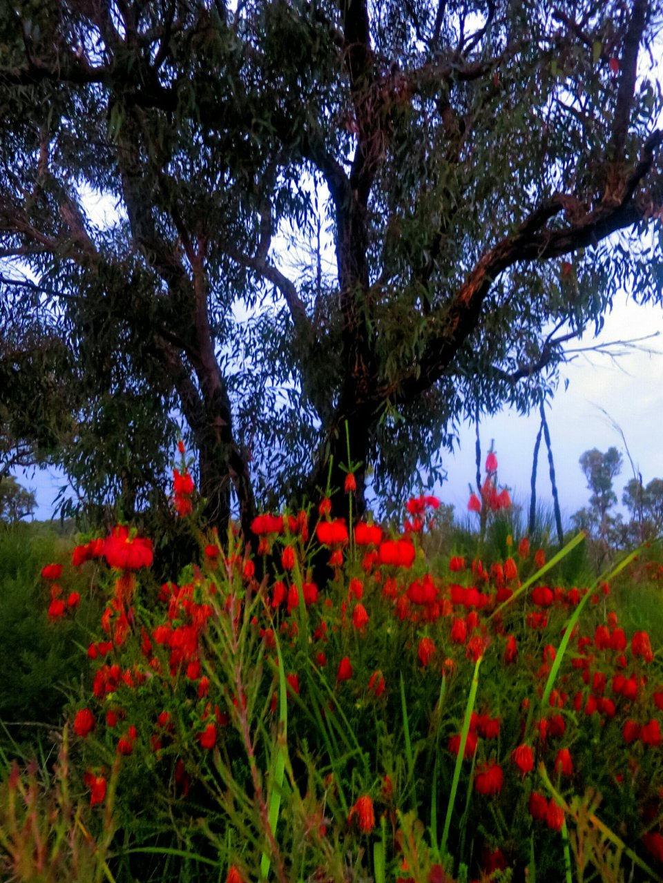 At 24.8 km, the sectoon of trail from Lake Meringup to the Dog Pool campsite is the longest stretch between camps on the Bibbulmun. From Lake Meringup, the Karri forest returned. The roar of the ocean was replaced by birdsong. Tall trees and amazing birdsong were back. There was more of the bright red Bottle brush which was almost at the end of its flowering cycle. Without the flowers the shrub looked pretty ordinary.