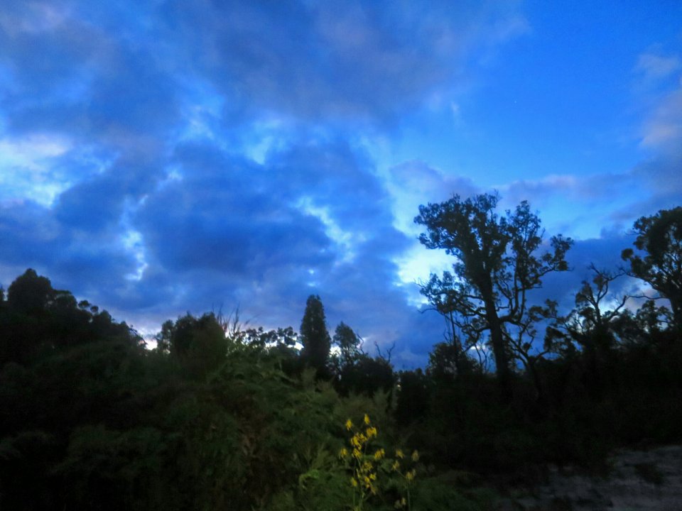 It was earily quite in the forest as I walked on. Two kamikazi bats came out of nowhere aiming straight for my head. They came so close, it really gave me a fright. It will be some time before it gets light. The clouds were like a lid over the sky.