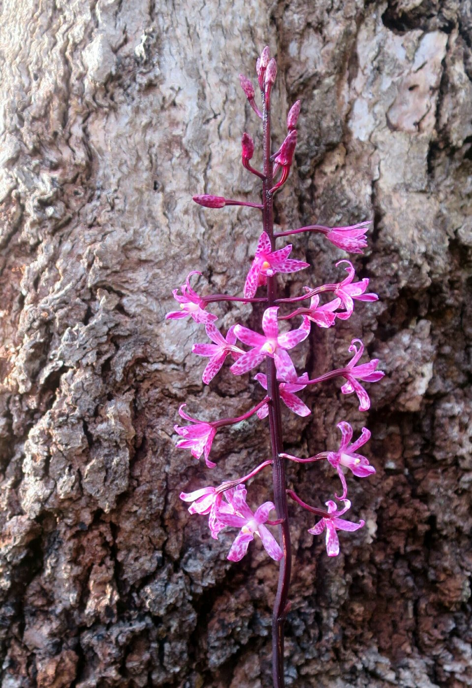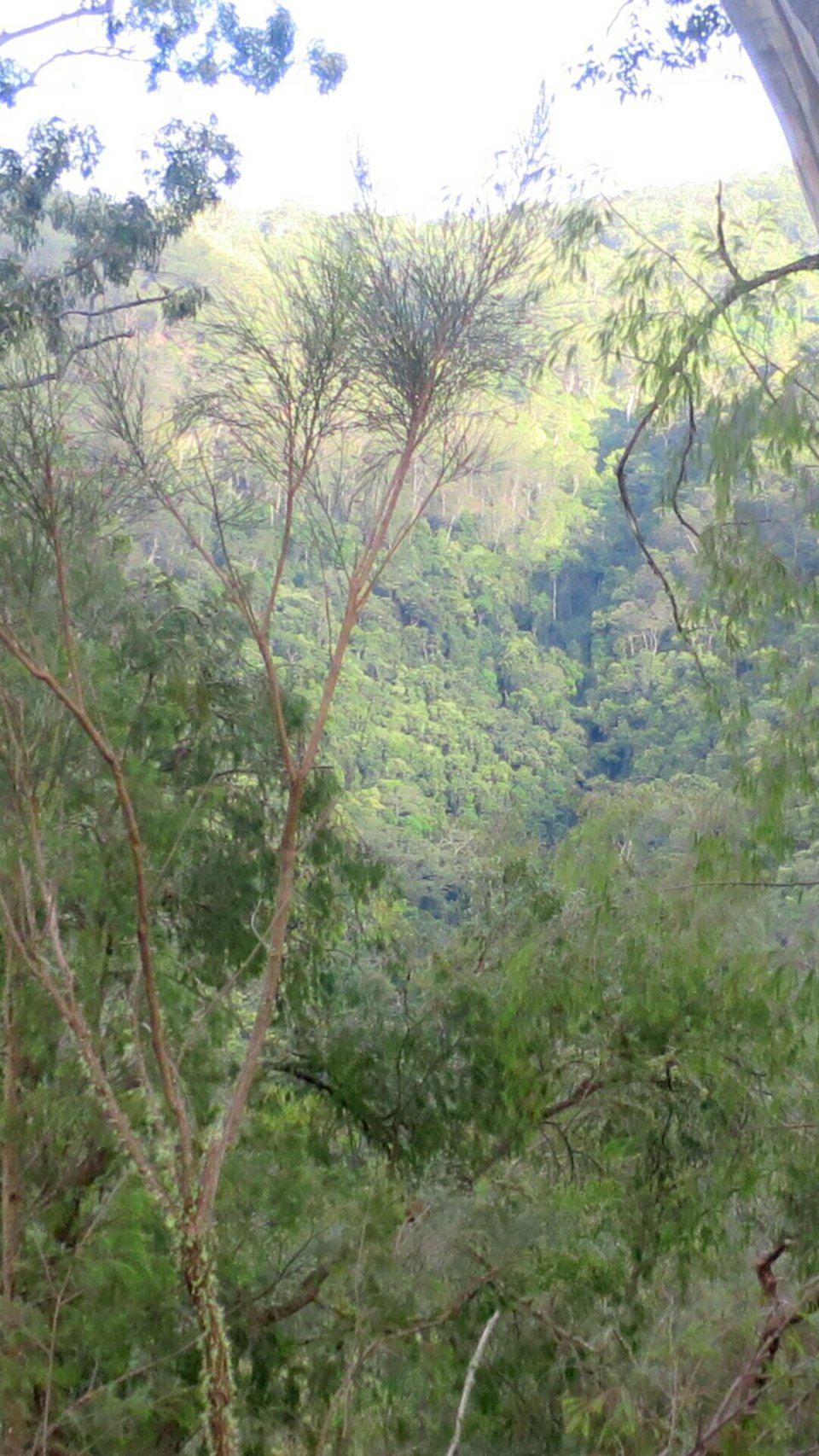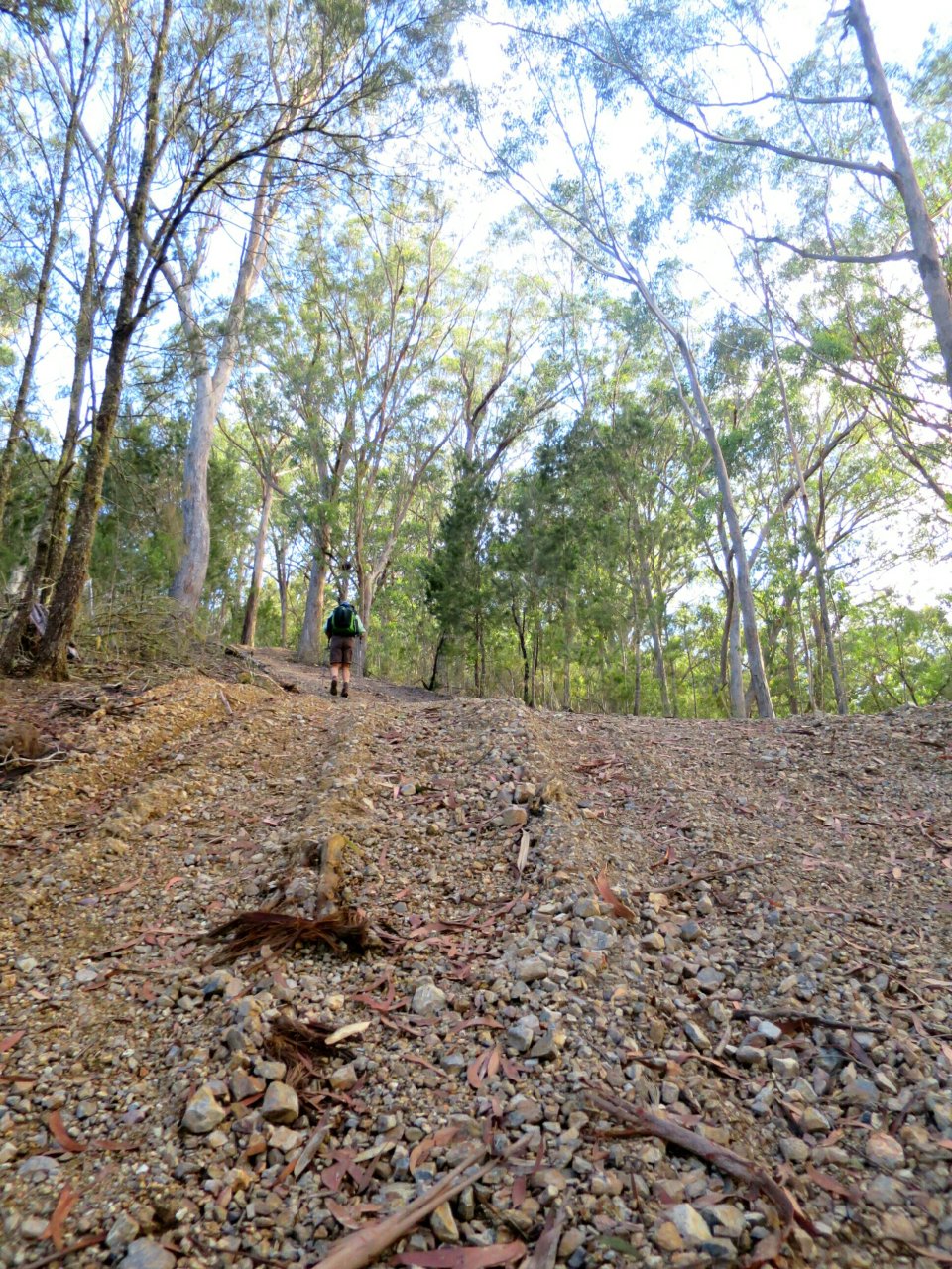 The ascent out of the valley started almost as soon as we left the hut. It didn’t take long to start breaking a sweat. It was a tough 4 kilometres of the steepest trail we’ve walked for quite some time. In really steep sections it was hard to get traction and I found myself sliding backwards if I stopped. Slowly, slowly we made our way up stopping a few times to see the few sections of remnant Gondwana rainforest surrounded by dryland forest. It took us just a bit over an hour to climb the steepest 4km of the trail.