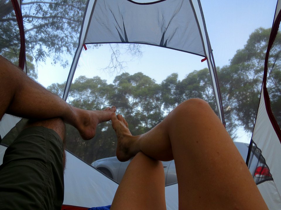 We made it back to our campsite at Mt Field just on dusk. The silence of our campsite was occassionaly broken by low-flying helicopters passing over, carrying water buckets. We later found there was an active bushfire not far from Maydena, a town we passed on our way out to the dam.