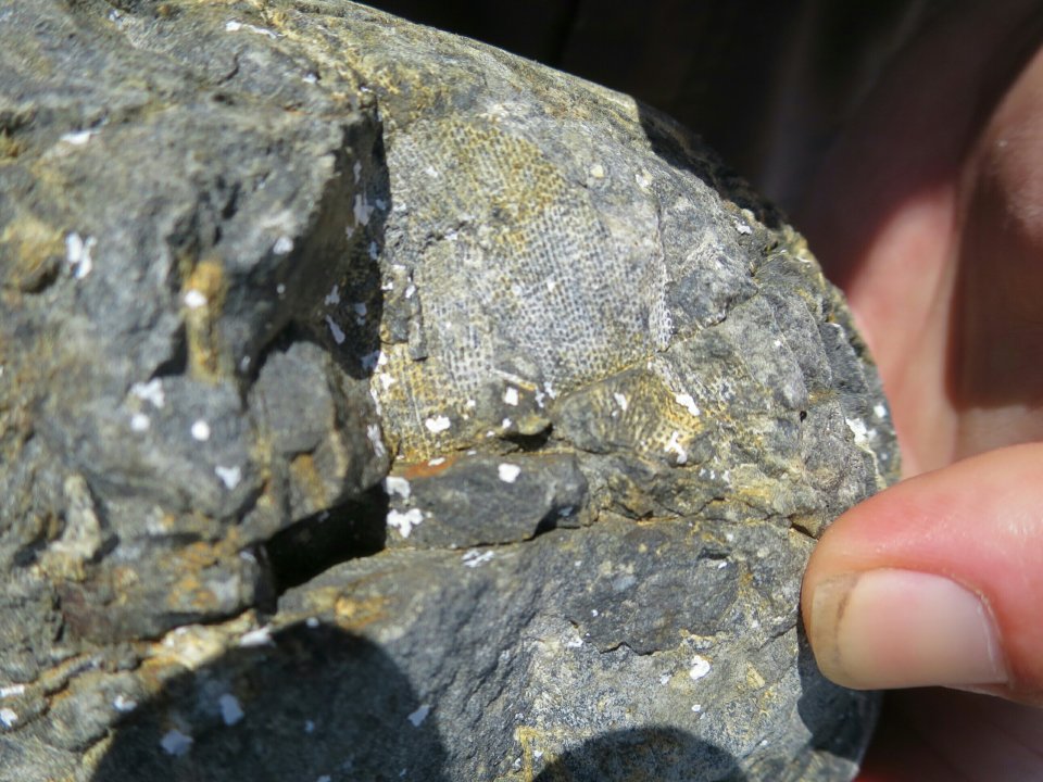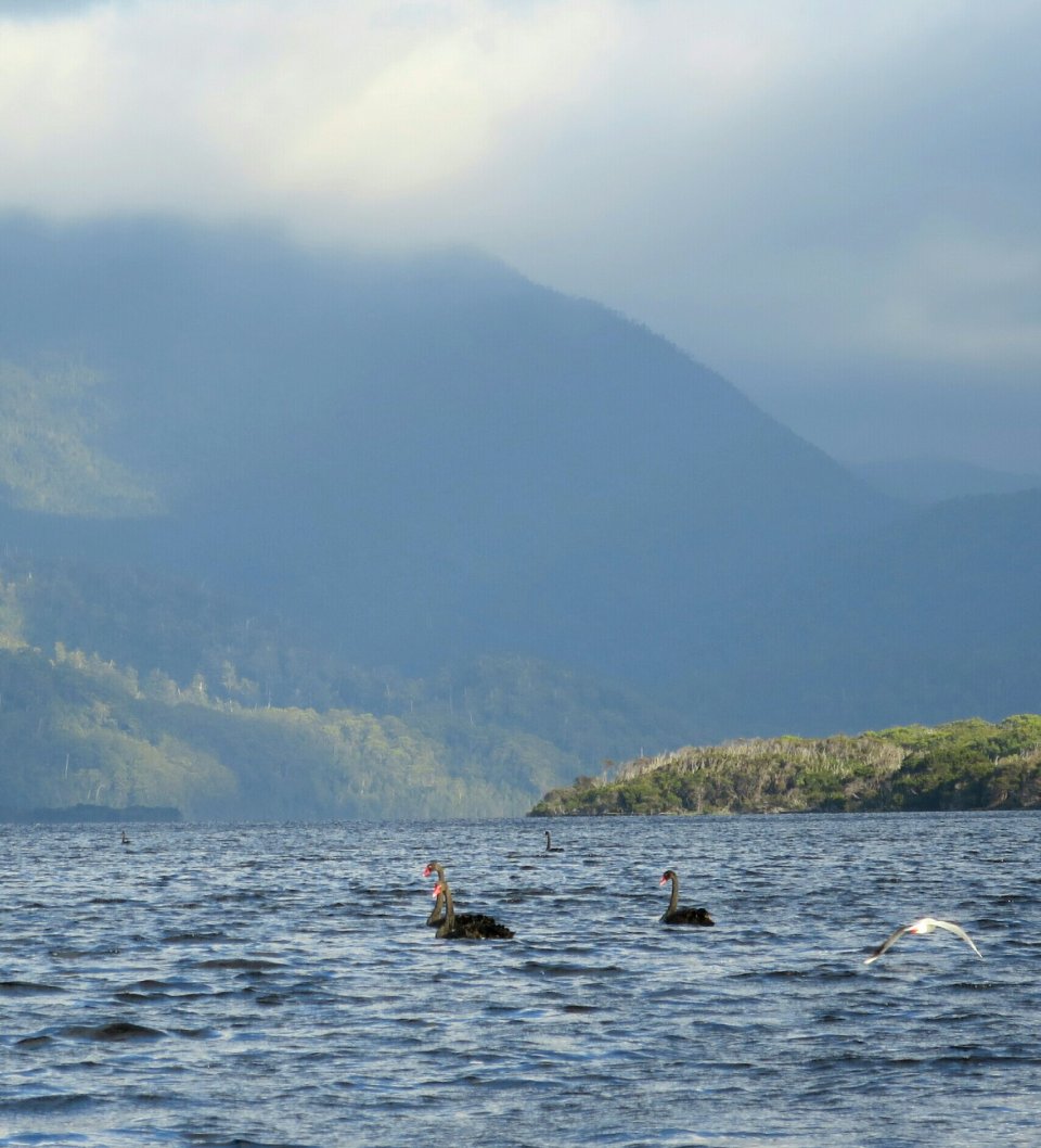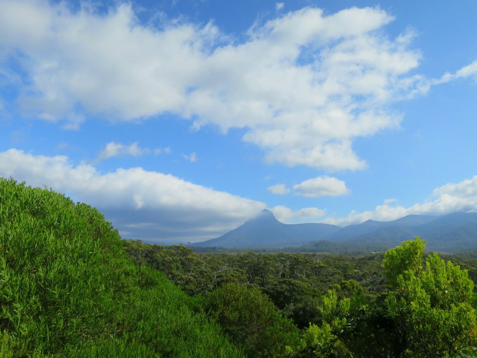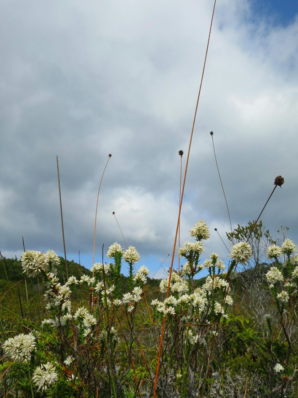 As we made our way though the button grass meadow near Osmoridium Beach the clouds were lifting and it felt like the wind had shifted, clearing some of the smoke from the air. It was hard work walking uphill away from the meadow and I felt slow and sluggish. Although it was lovely to experience the open forest with the big gum trees. It reminded me briefly of normal hiking. A bit more up and down through mud and roots and we could hear the punding of the surf on Granite Beach.