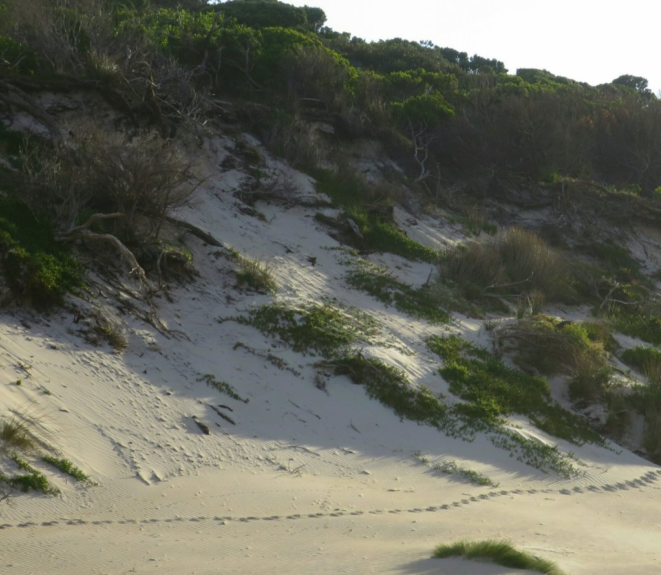 The beach had been swept clean by the tide and yesterdays scouring wind. High above the waterline we followed a set of fresh footprints left overnight by some nocturnal hunter. Hammer thought it may have been a Tasmanian devil. Very light and disciplined whatever it was.