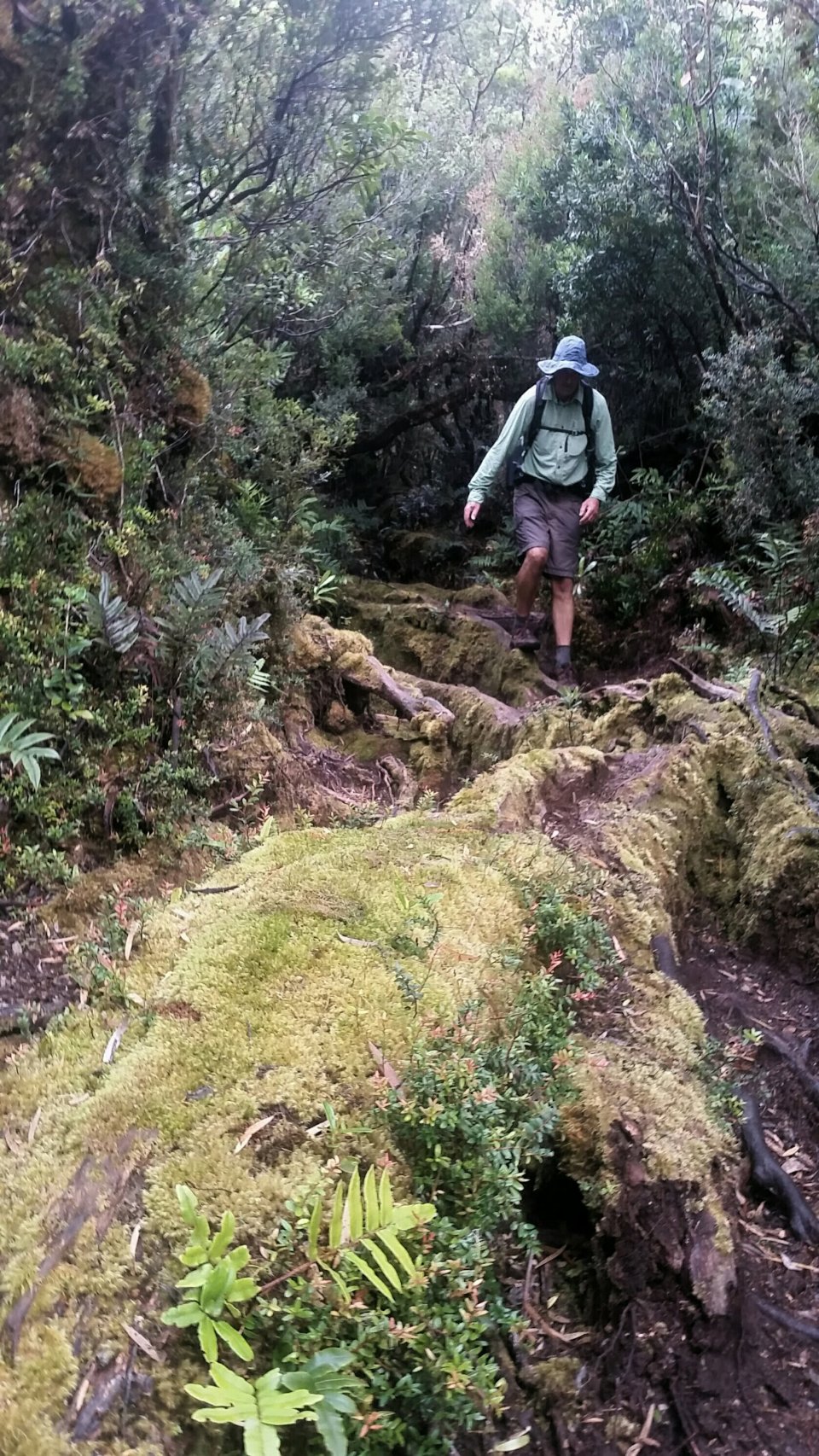After the first big climb we knew there were 6 others hills to climb before we reached South Cape Rivulet camp. It was a mudfest just like before except today we were fresh and we knew we were in for a long, slow muddy slog. The main objective was not to get hurt and not to get knocked on the head by the low lying branches. Not all was bad squelching through the mud. There were some incredibly beautiful plants that seem to prefer growing in this wet mud. It was so nice to stop and admire the contrast of such beauty existing in such an unusual setting. After stopping to take photos I would place branches around some particularly fragile looking plants so that they may not get trampled by the next set of hiking boots that come through. I hate to think how many I may have crushed without noticing. I can see why there are so many boardwalks on Tasmanian trails.