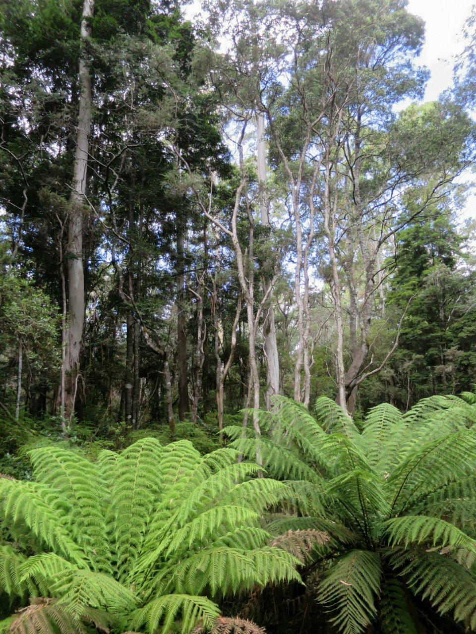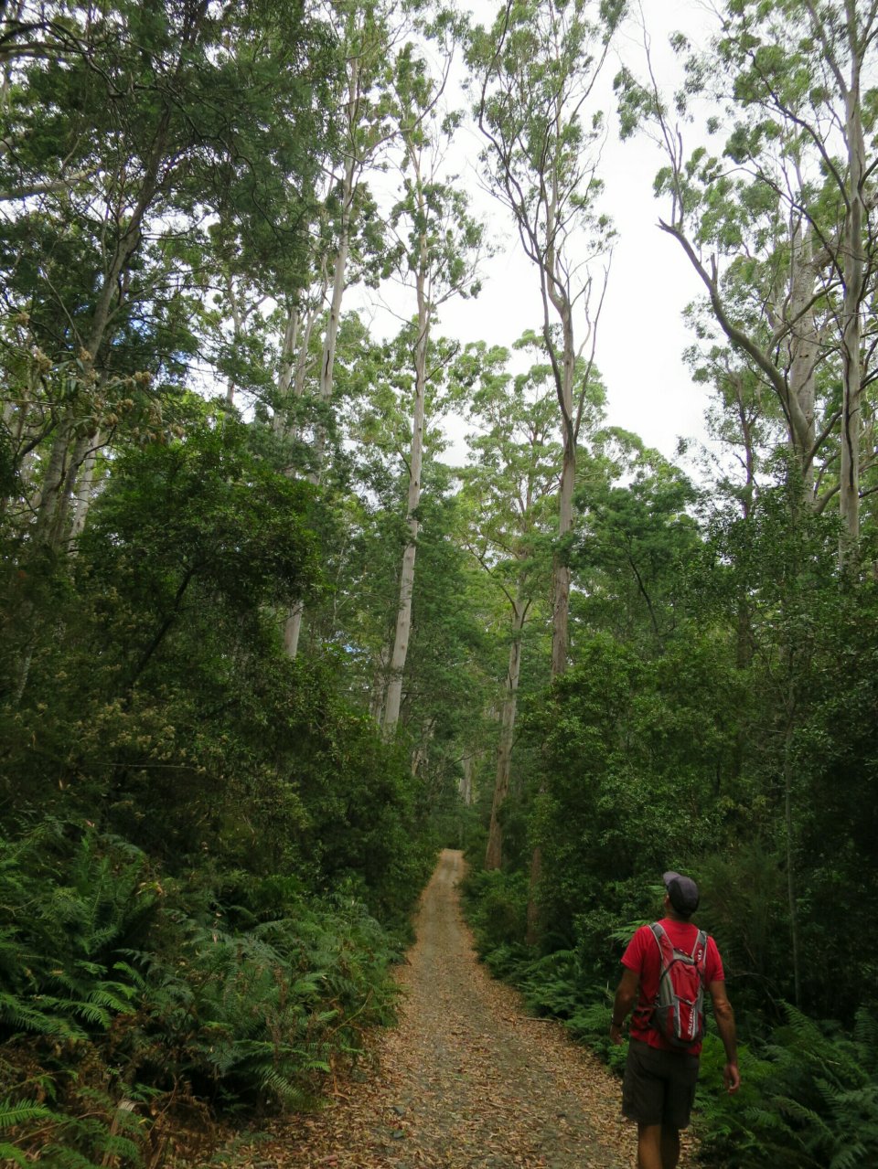 It was overcast with a cool wind as we drove a little to the south of Weldborough to hike through a section of the Blue Tier cool temperate or sub-alpine rainforest, home to the tallest flowering trees in the world, the Swamp gums (Eucalyptus regnans). This walk boasts a specimen of Swamp gum which has the widest girth of any tree in the world measured at 19.5m at its base.