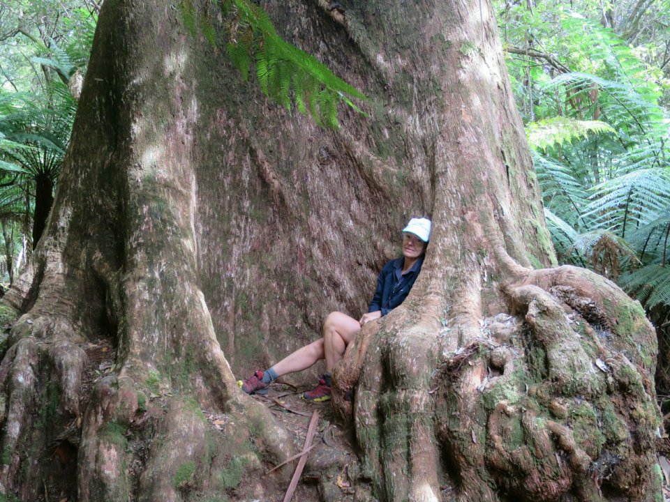 Stepping into the forest was a most magical experience. Towering tall gums with a dense understory of fern trees created another wordly look that was in stark contrast to the yellow coloured pastures we passed earlier. We felt quite privileged to be able to be here all alone experiencing this incredibly old landscape. The big girth of the Swamp gums was something else to behold. One of the trees, given the name The Cradle Tree by the locals, truly does provide a cradle at its base. It felt quite special to sit in its base feeling quite protected by this giant of the forest.