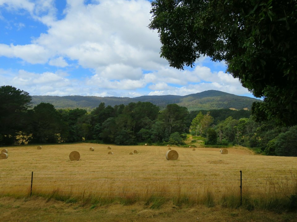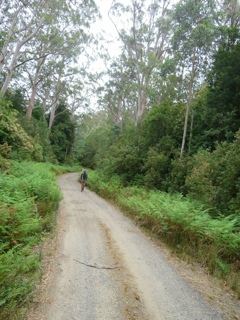 During the 1800’s tin was discovered in the Blue Tier area. Forests were cleared to create mines and housing. Clearing for agricultural purposes soon followed. While mining ceased in the early 1900’s agricultural land- use still continues. Weldborough was a much larger village at the height of the mining period. It boasted a large population which included over a 1000 Chinese miners. Today Weldborough is no more then a pub and a handful of houses. The drive south from Weldborough was along a windy road passing pasture fields dotted with bales of rolled hay. We rurned off the main road and followed a dirt road for a short while before reaching the start of the walk.