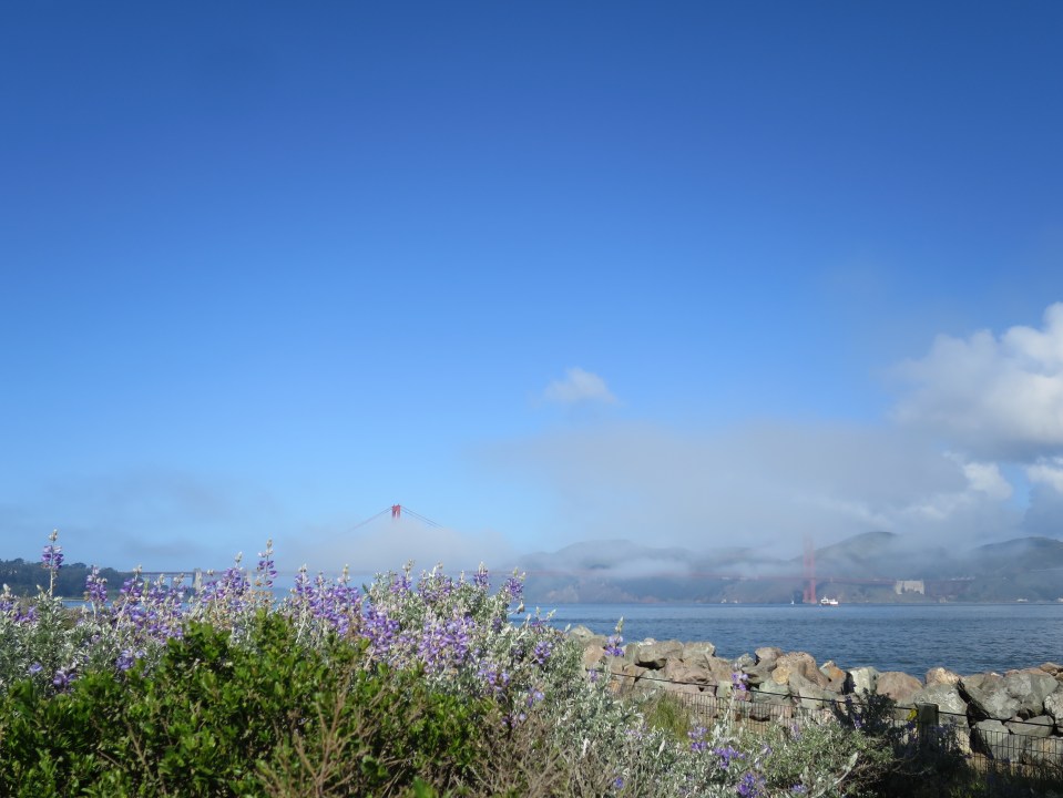 Friday morning we woke to a thick fog blanketing the city. We went for a walk along the waterfront towards Chrissy Field and towards the Golden Gate bridge. It was a lovely cool morning and the bridge had a slow reveal out of the fog. The ships were all blowing fog horns and the air was still. Within half an hour a slight breeze had sprung up and the fog had all but disappeared.