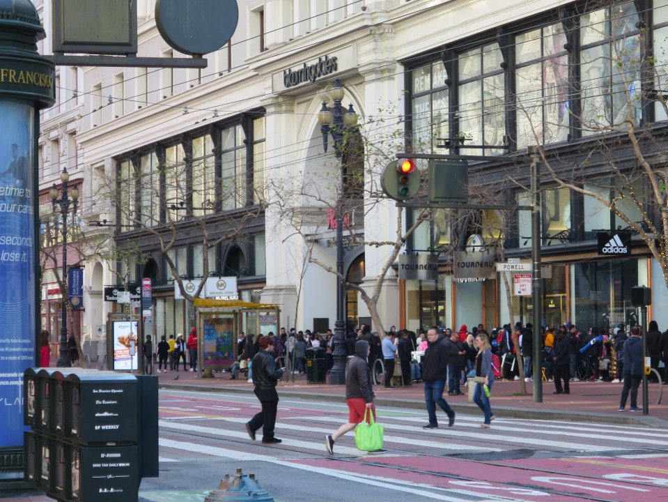 Saturday morning arrived for another sparkling, clean blue sky day. Almost feeling a bit sad about having to leave San Francisco today on such a lovely day. On our way to breakfast we walked past a huge line of shoppers outside an Adidas store as well as a long queue waiting to catch the heritage tram on Powel Street. It seemed a bit early to see so many people already lining up.