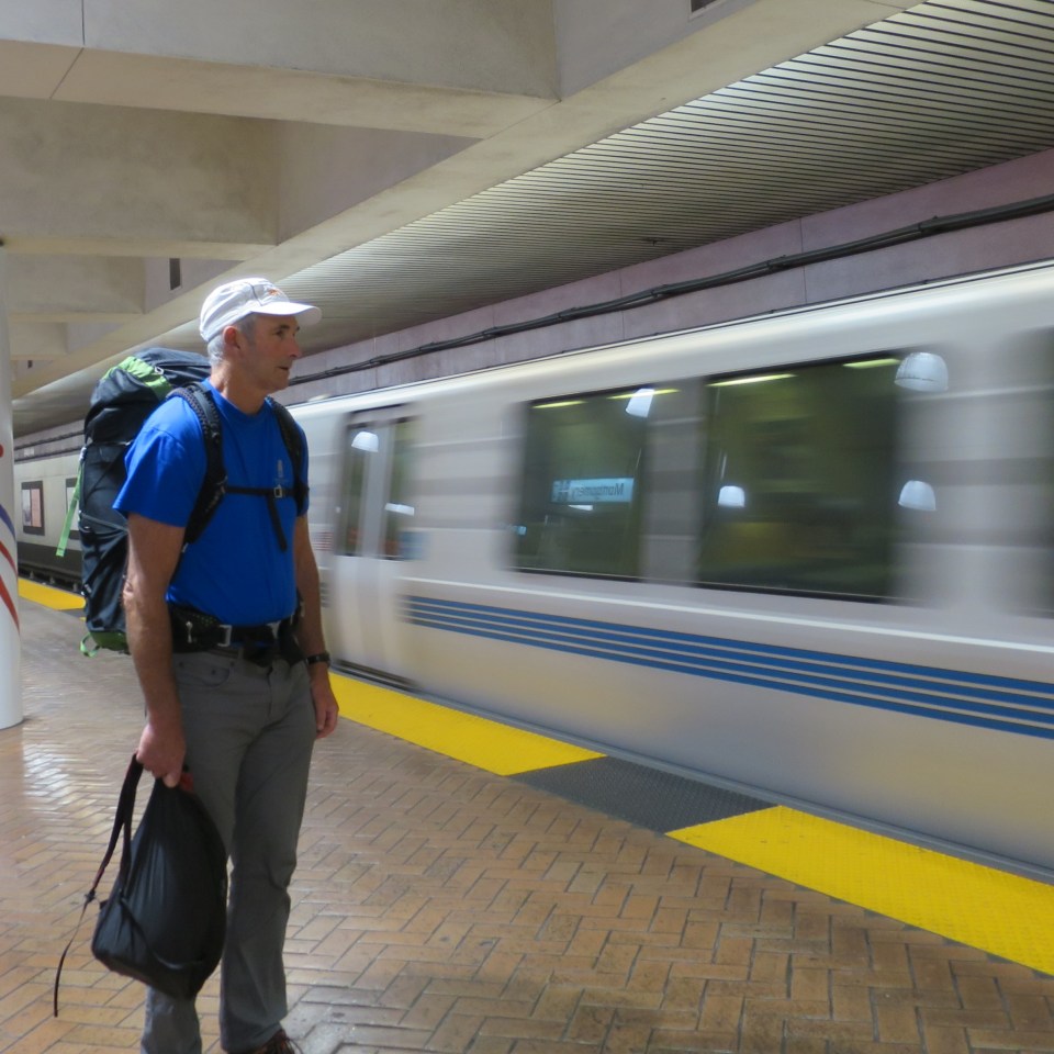 He checked dates of our onward tickets, dates of our last visit to the US and financial means of supporting ourselves while we we were hiking. Having just retired, we assured him that we did not intend to work. Passports stamped for 6 months and out the door to baggage collection. As it was such a long delay to get through border control, all the bags from our flight were offloaded onto the ground adjacent to the carousel. It was a bit chaotic as passengers from other flights milled around the carousel waiting for their bags. My bag was waiting but Hammers could not be located. Luckily there were extremely nice ground staff who helped us. The bag was eventually located and much to our relief we were finally on the BART train to our accommodation in downtown San Francisco. A total of 24 hours after shutting our front door at home we were in our nice hotel room in San Francisco.