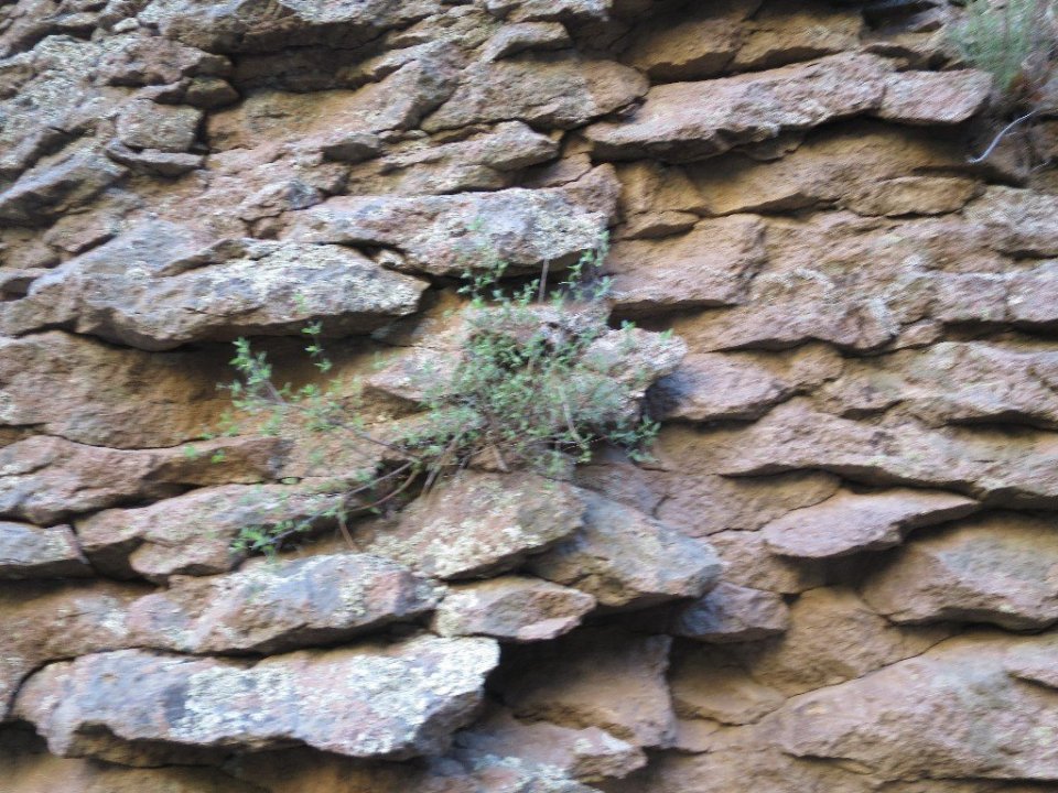 The sun was hitting the tops of the canyon walls and it was over two hours of hiking before we found a sunny spot to sit and have breakfast while thawing out. The granduer of the canyon walls was undiminished. Huge hoodoo walls sat of top of rock faces that appeared fractured and stacked like drystone walls.