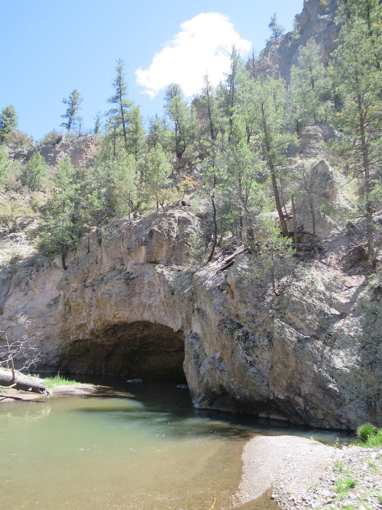 The canyon walls began to open up as we hiked further upstream. Huge caves were cut in places, some resembling an amphitheatre. And just before we reached the junction with the CDT High Route the canyons gave us one parting spectacular formation, a huge cave alongside a bridge carved into the wall.