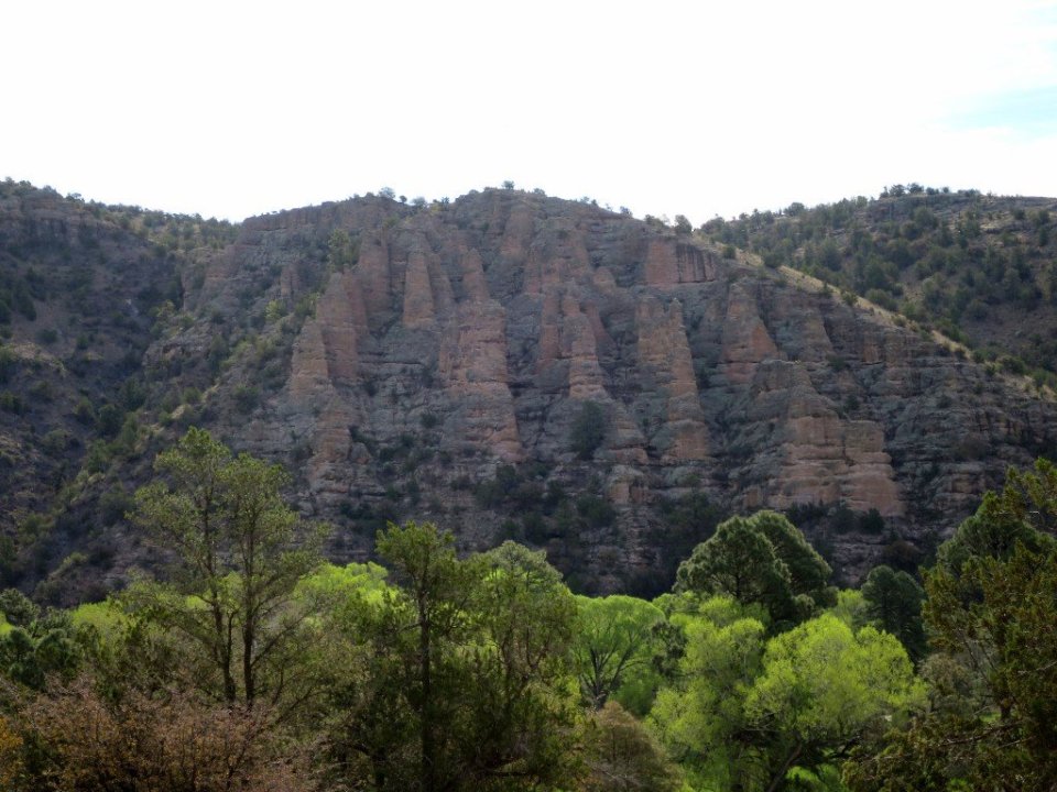 We crossed the river another 12 times before reaching Highway 15 and I had still not warmed up. I never thought a road walk in sunshine would be so welcomed. The small settlement of Mimbres, where Doc Campbells Post located is set in a canyon whose walls were carved into huge towering hoodoos. These provide the backdrop to the settlement. What a lovely location, I liked it straight away.