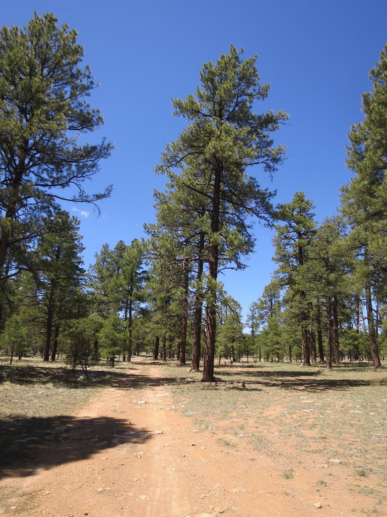 The jeep road turned into a gravel forestry services road which we followed for about 10 miles before calling it a day. The gravel road walk was through pine forest. The road went up to 8500 feet and then it went down to 7500. Not much more I can say about it. It just had to get done. We we stopped by the roadside to camp. Tomorrow we tackle another 11 miles on the same gravel road before we rejoin the CDT.