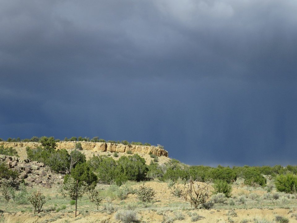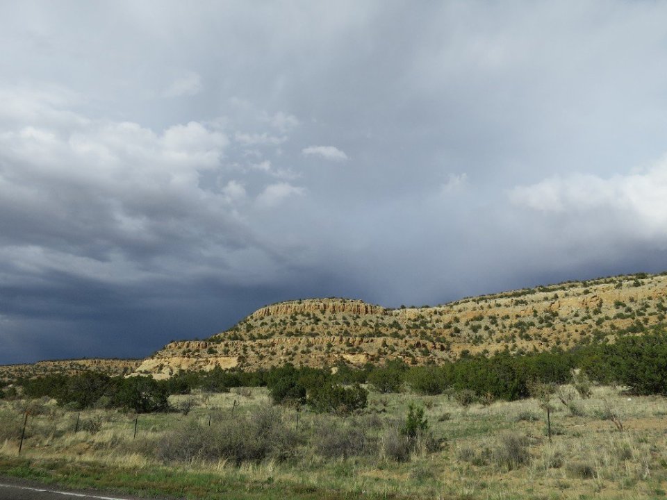 We spent about half an hour with her before saying goodbye. We aimed to get close to the I-40 and Grants so that we wont have a long walk into town tomorrow. The sky was turning dark blue and streaks of lightening lit up the sky behind us. The wind was coming from the opposite direction so we thought the dark clouds were being blown away. Hammer found a gap under a fence and we crawled under for another night stealth camping by a roadside.