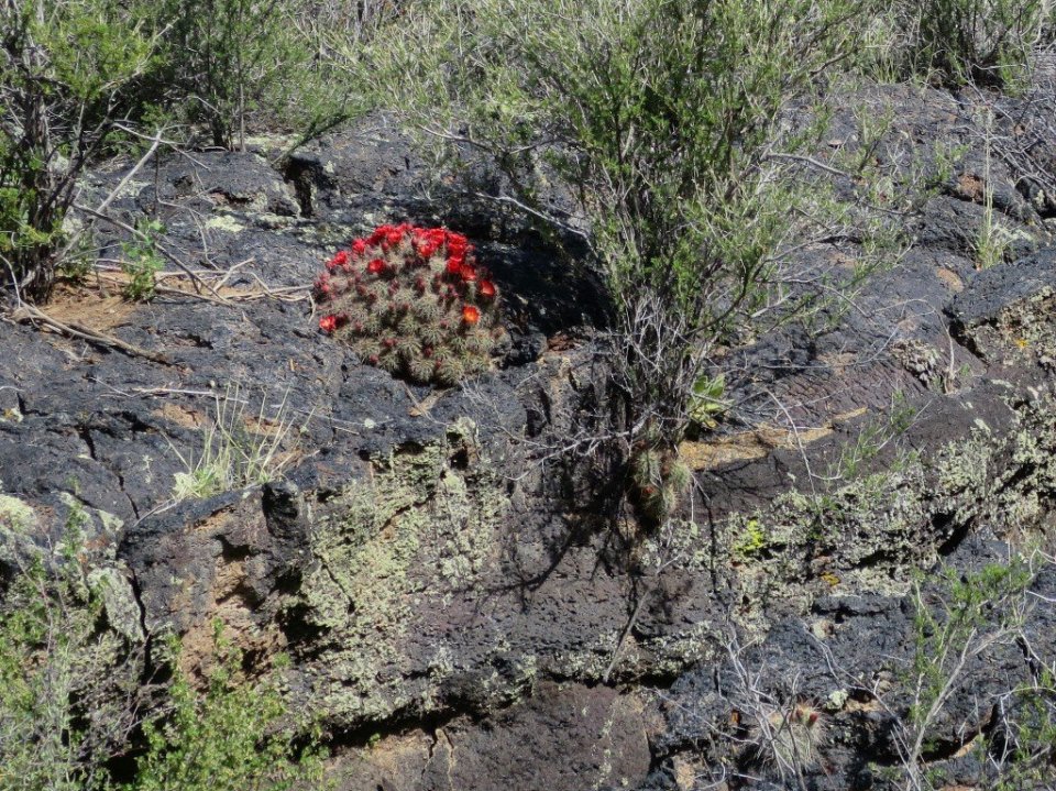 Red flowering cactus stood out beautifully against the black of the laval rocks. The lava rocks looked like folded pastry. We were walking along like kids in Disneyland, it was incredible such a surprising feature. We wound our way though The Narrows for about a 3 miles. The high sandstone walls echoed to the sound of our voices.
